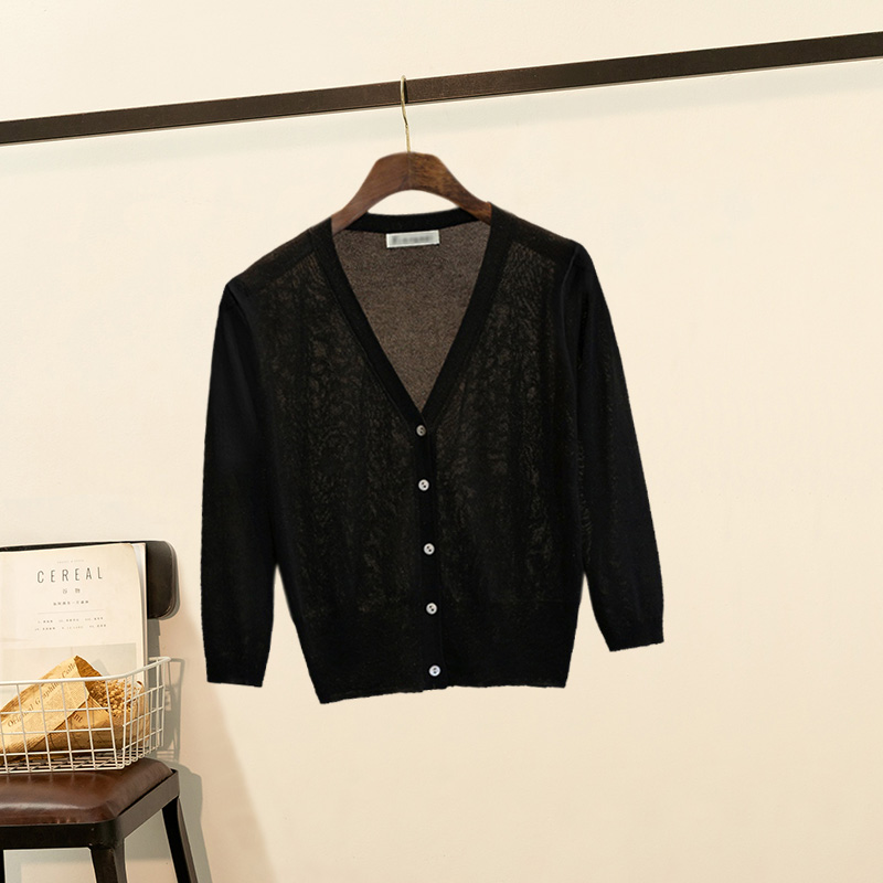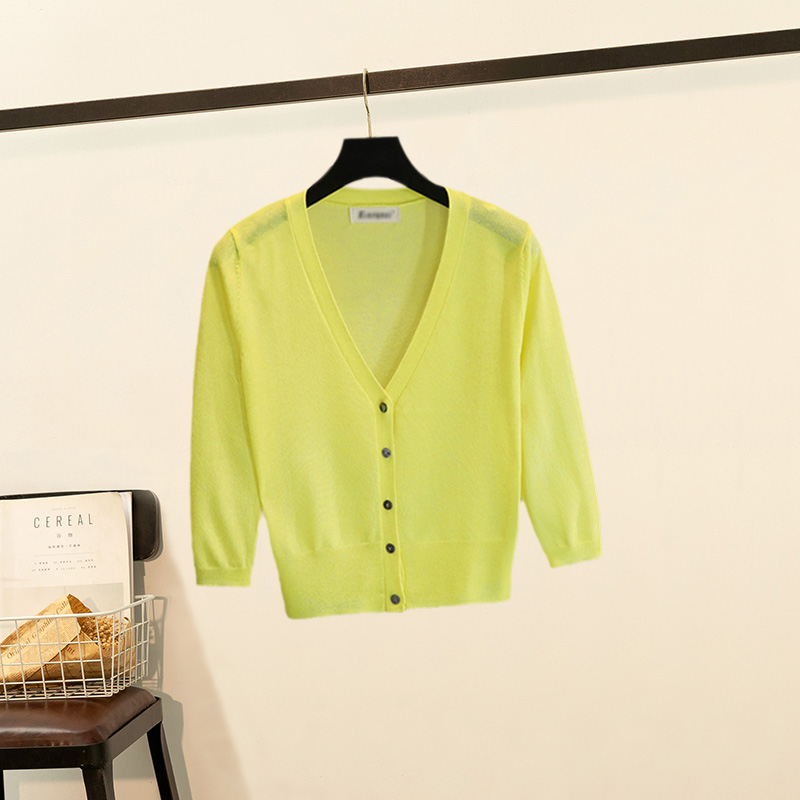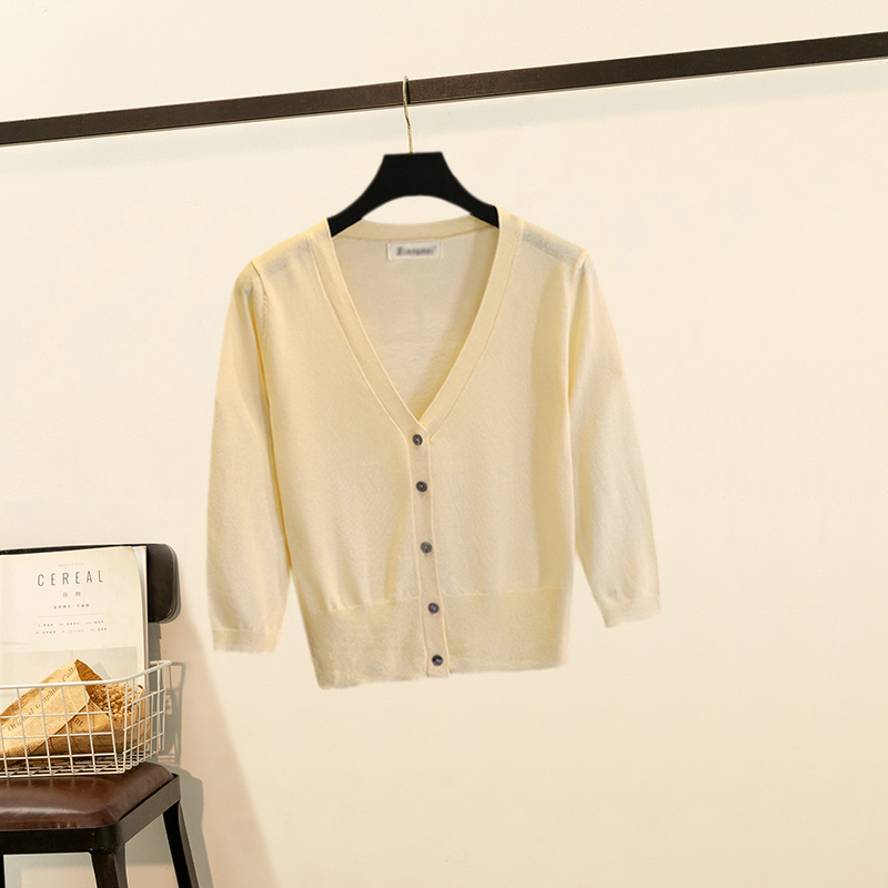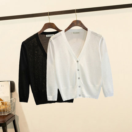 短款外搭七分袖空调衫夏季冰丝七分袖针织开衫女配吊带裙外套上衣
