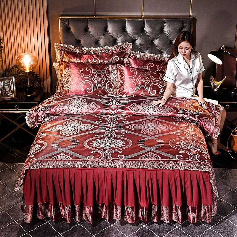 厂销高档纯棉贡缎提花四件套床裙款式被套床罩结婚庆床上用品轻奢