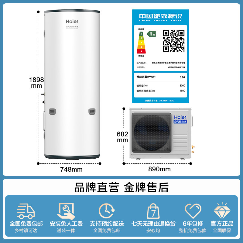 【国家补贴】海尔空气能热水器500升L家用商用大容量热泵一级能效