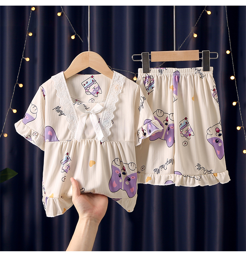 儿童睡衣纯棉女童小学生公主夏季薄款短袖套装卡通中大童家居服春