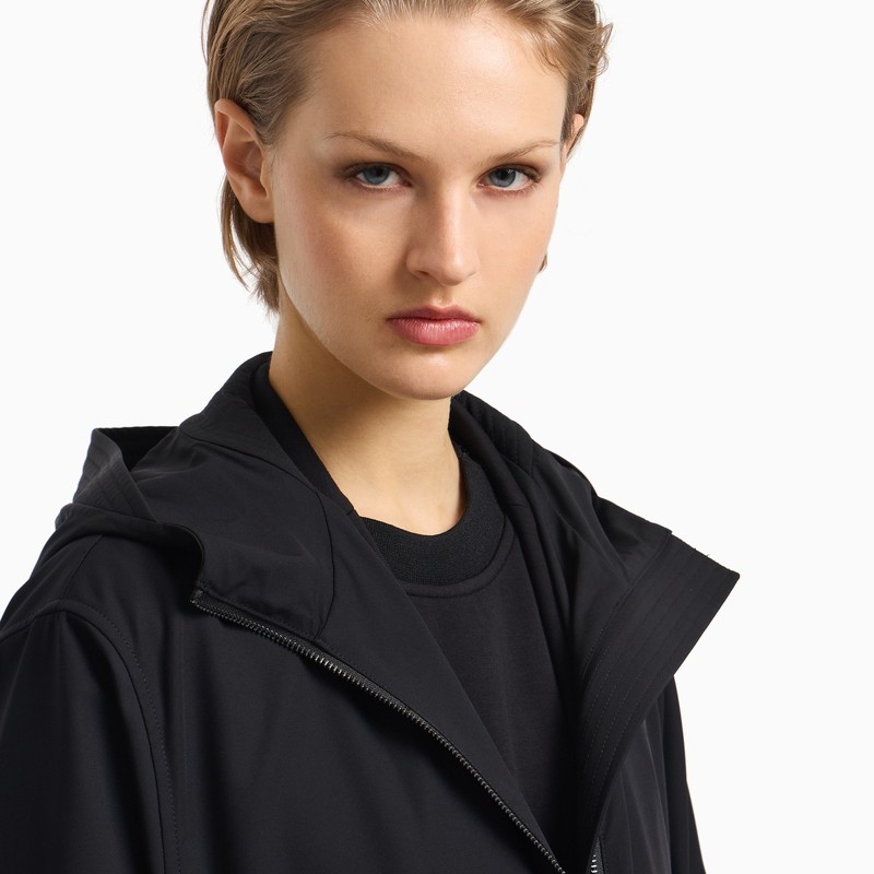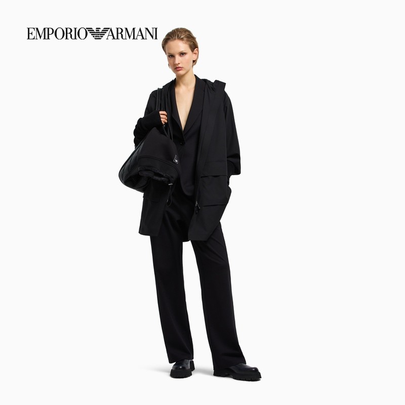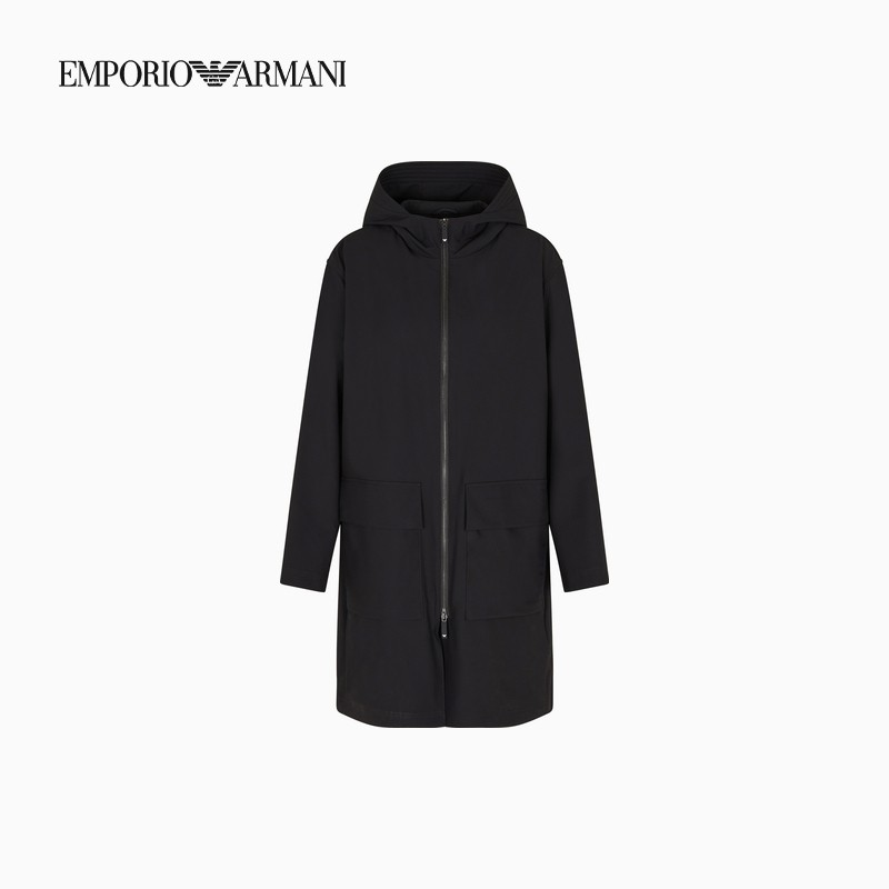 EMPORIO ARMANI/阿玛尼冬新款女中长款连帽轻薄廓形风衣棉服外套