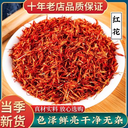新疆特级正品红花藏红花茶艾叶草中药材散装红花500g包邮泡脚泡澡