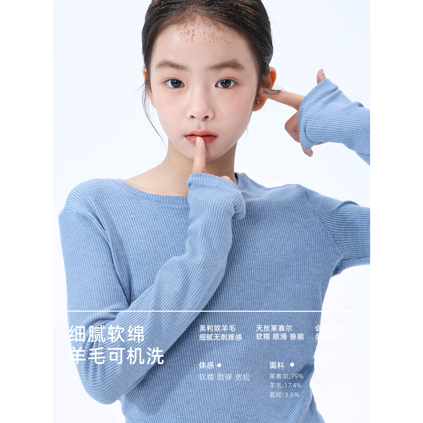 claragirls女童羊毛长袖t恤2025秋冬新儿童吸湿排汗弹力运动上衣