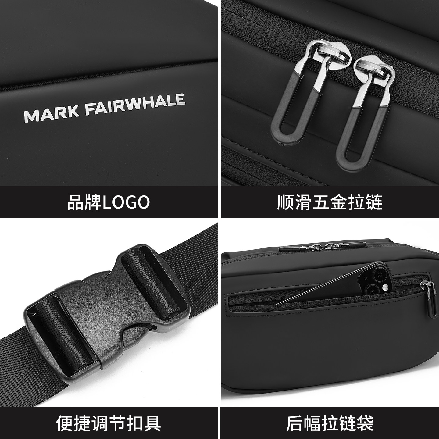 马克华菲男士通勤简约黑色胸包