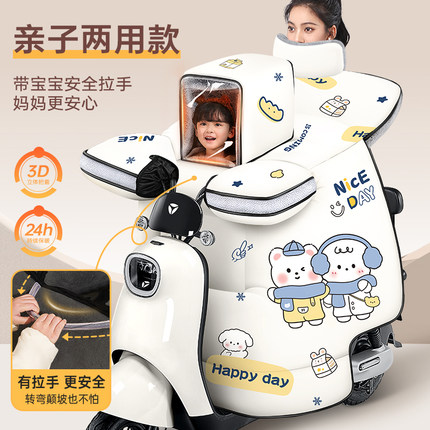电动车挡风被冬季亲子儿童加绒加厚防水防风罩电瓶摩托车2024新款