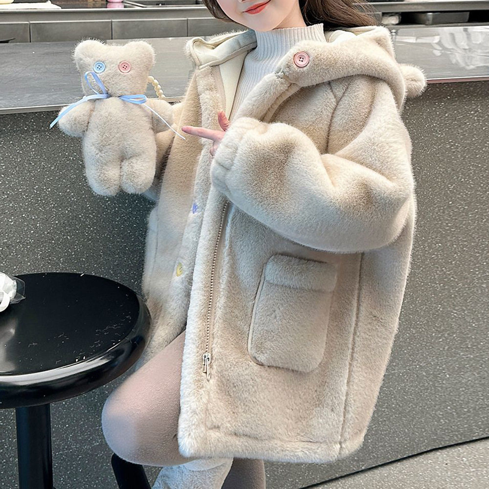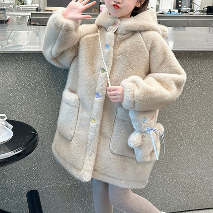 女童加绒外套冬装新款童装中大童仿毛毛衣服儿童冬季毛毛衣加厚潮