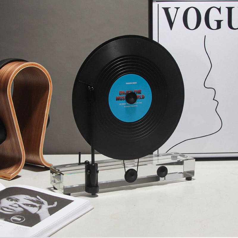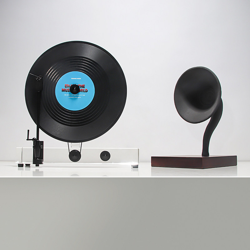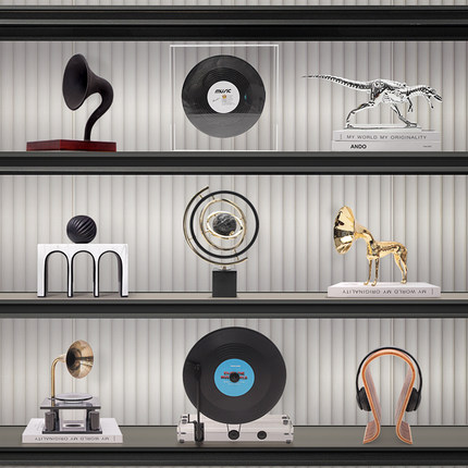轻奢音乐主题酒柜开放格电视柜摆件黑胶唱片机装饰品金属质感摆设