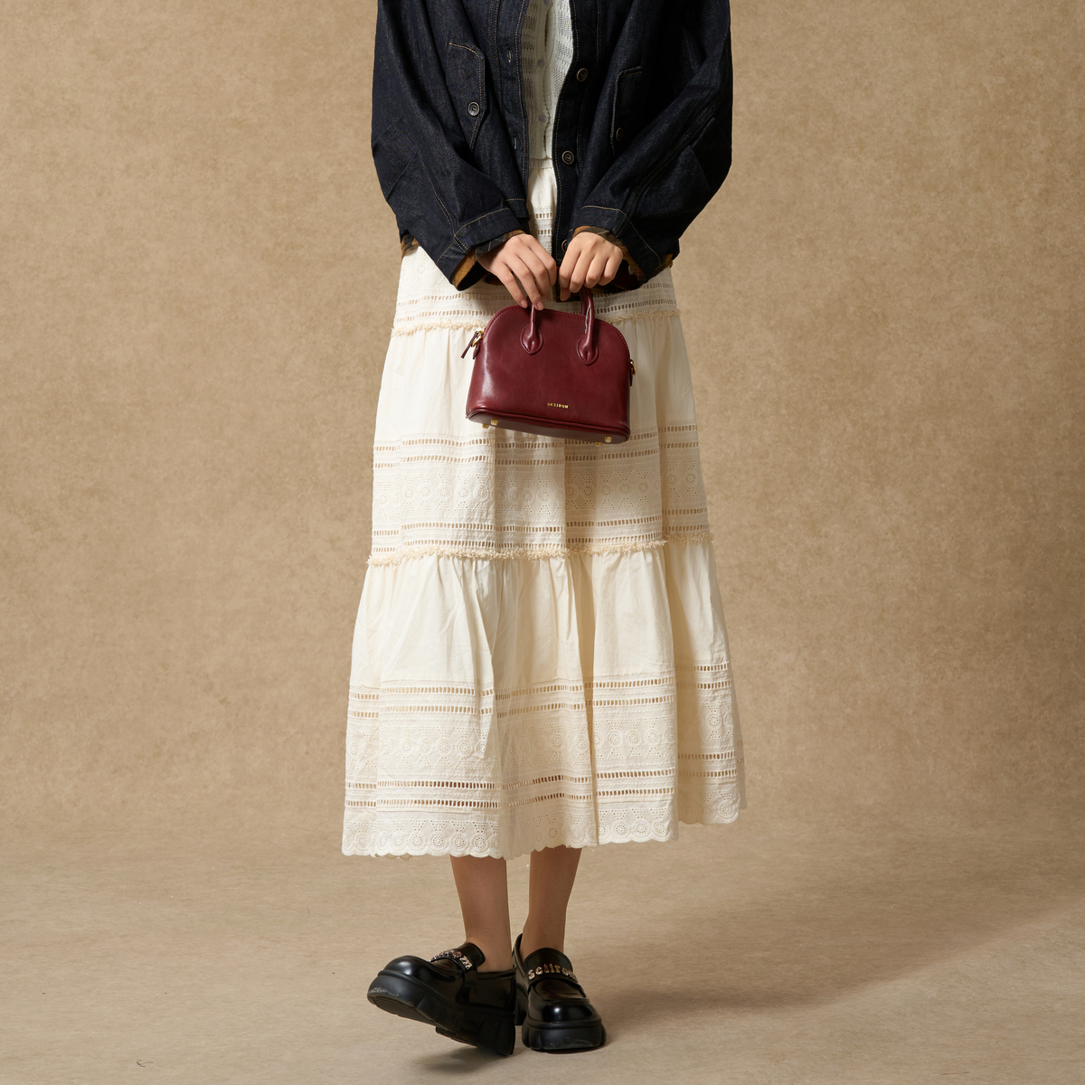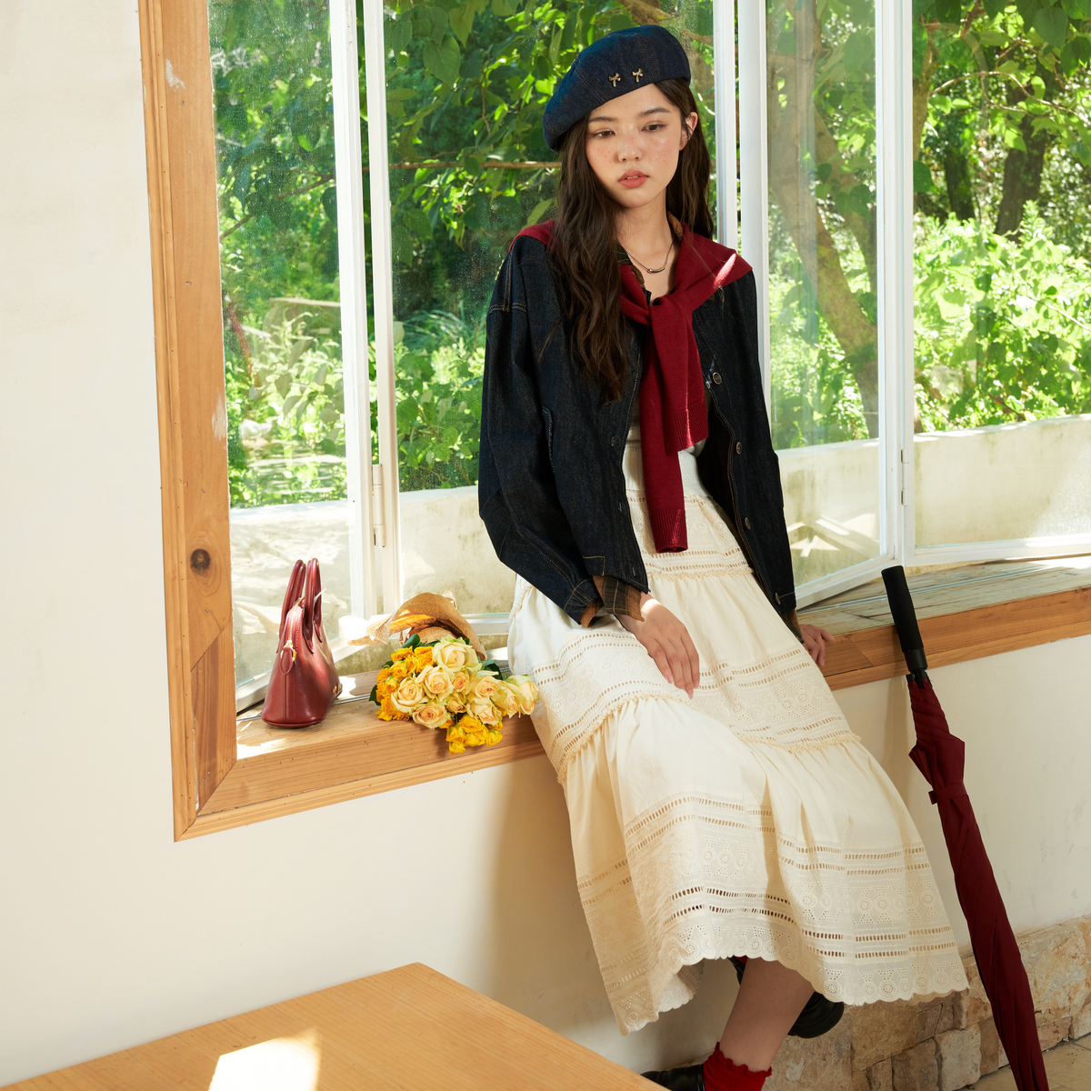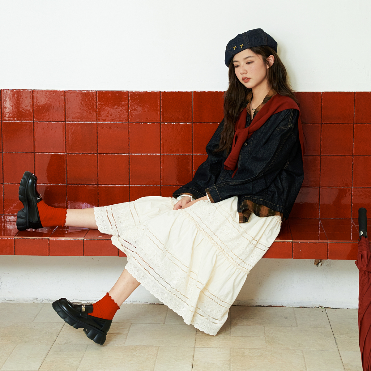 西町村屋波嬉风半身裙女2025秋季新款蕾丝拼接长款摆裙XAAC10509