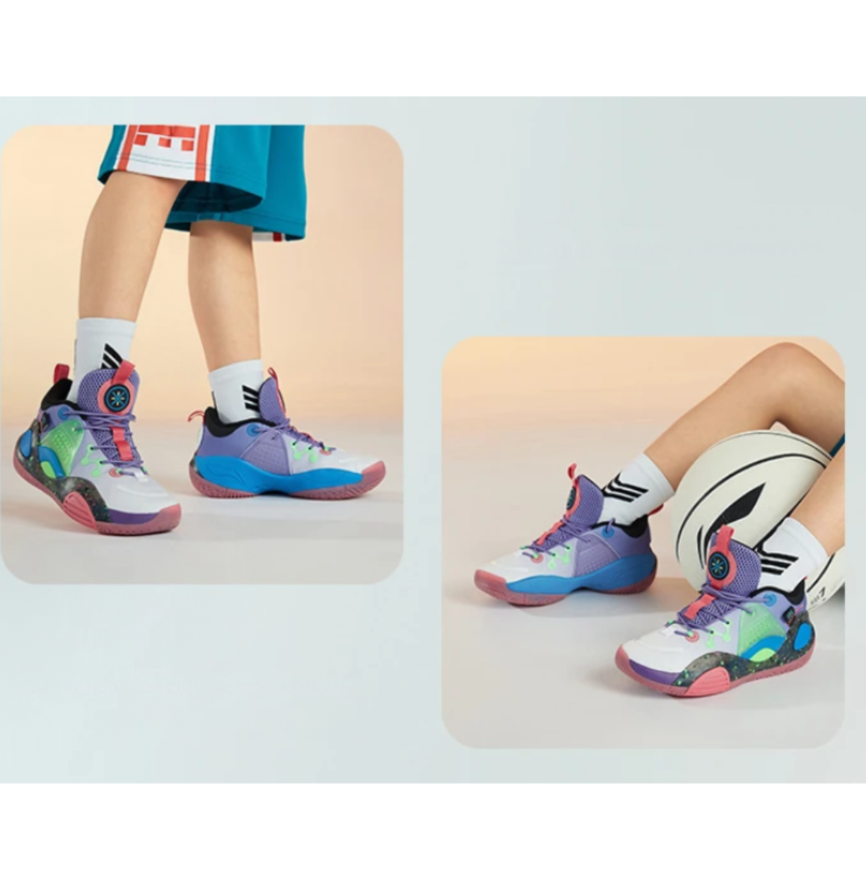 李宁新品男大童反光减震回弹童篮球鞋系带运动鞋YKBS076