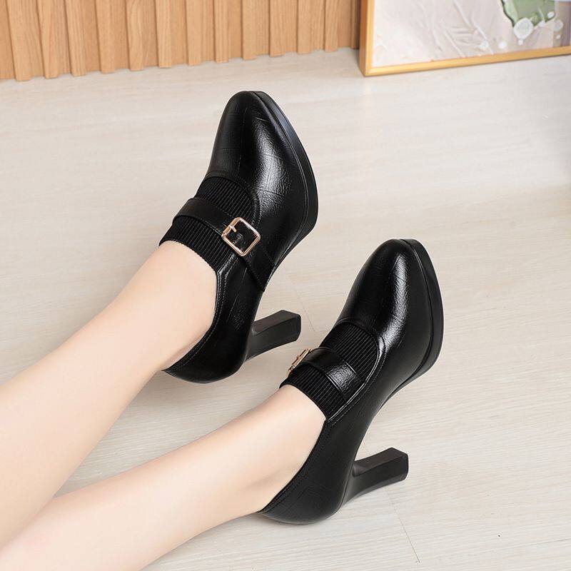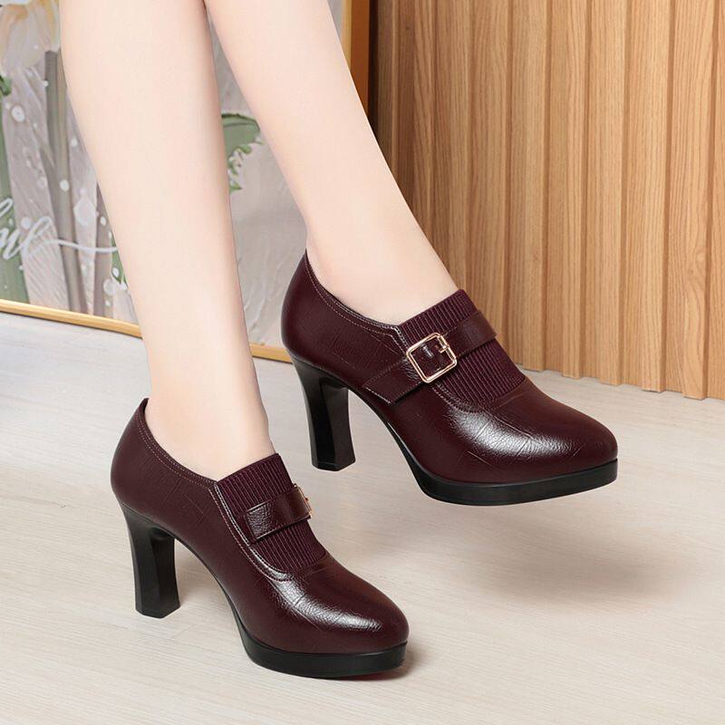 气质高跟女鞋2026新款中跟深口单鞋婚宴妈妈鞋子酒红色春夏皮鞋