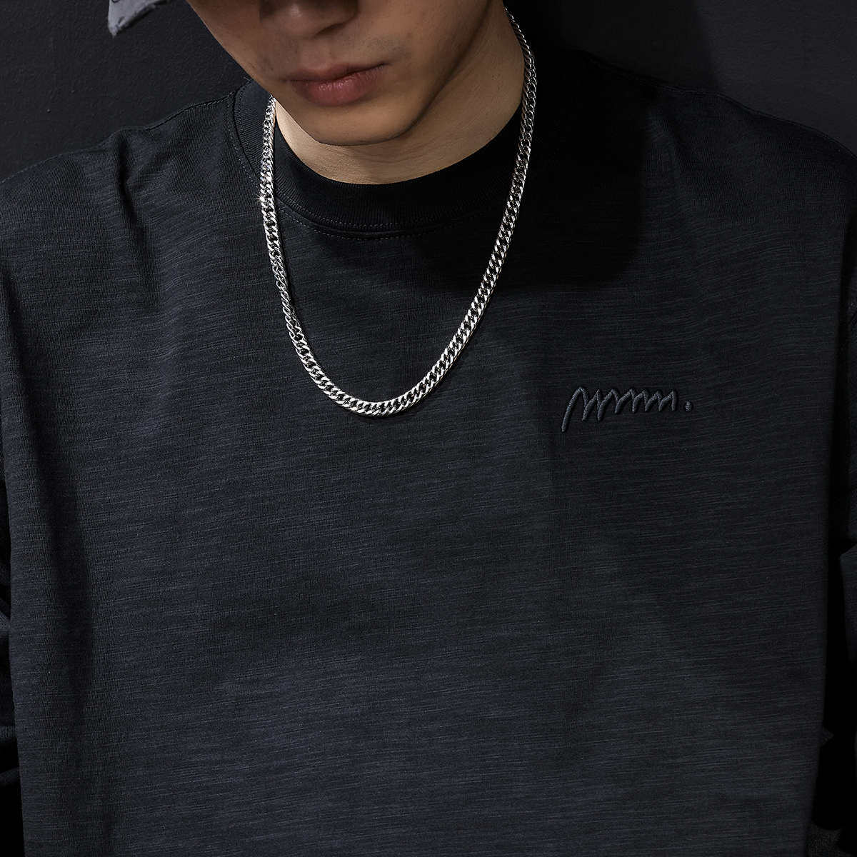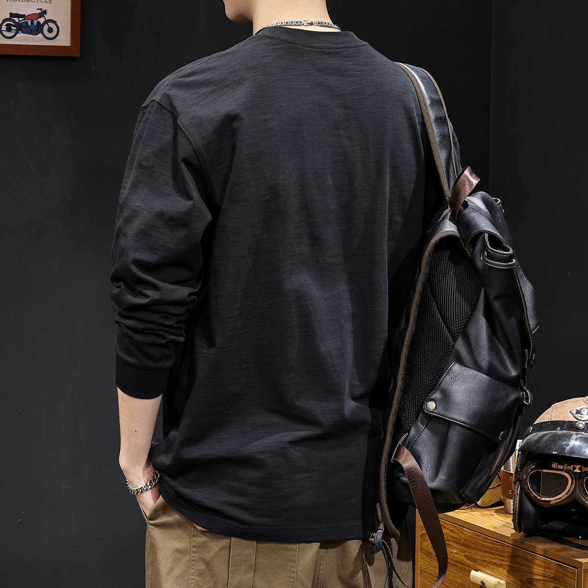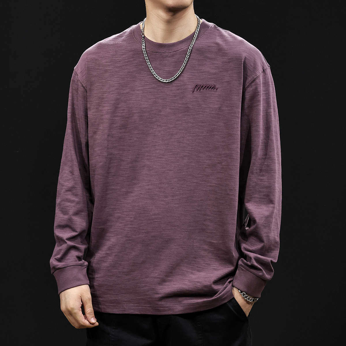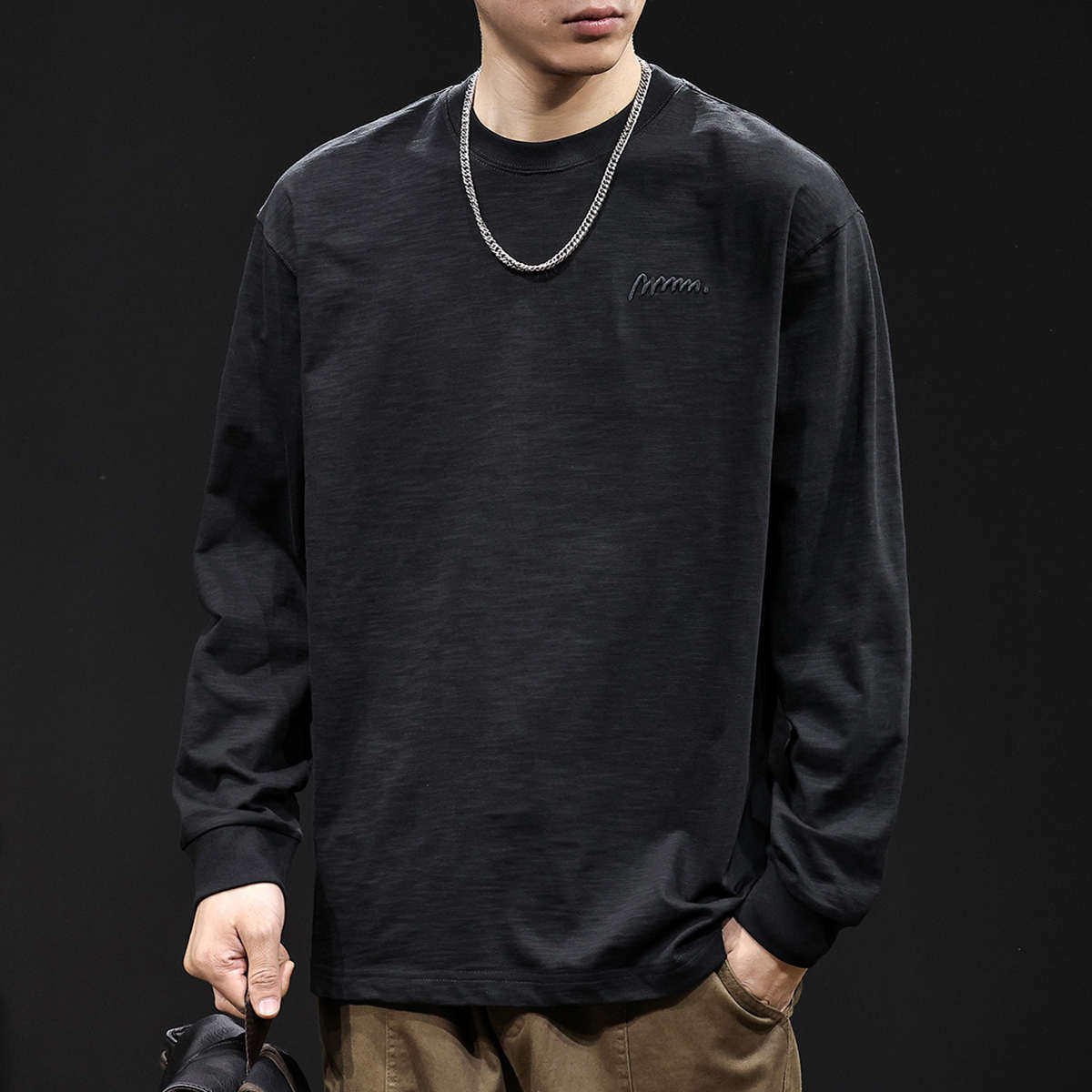 长袖t恤男春季2025新款男士竹节纯棉圆领内搭衣服春秋款大码黑色