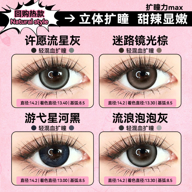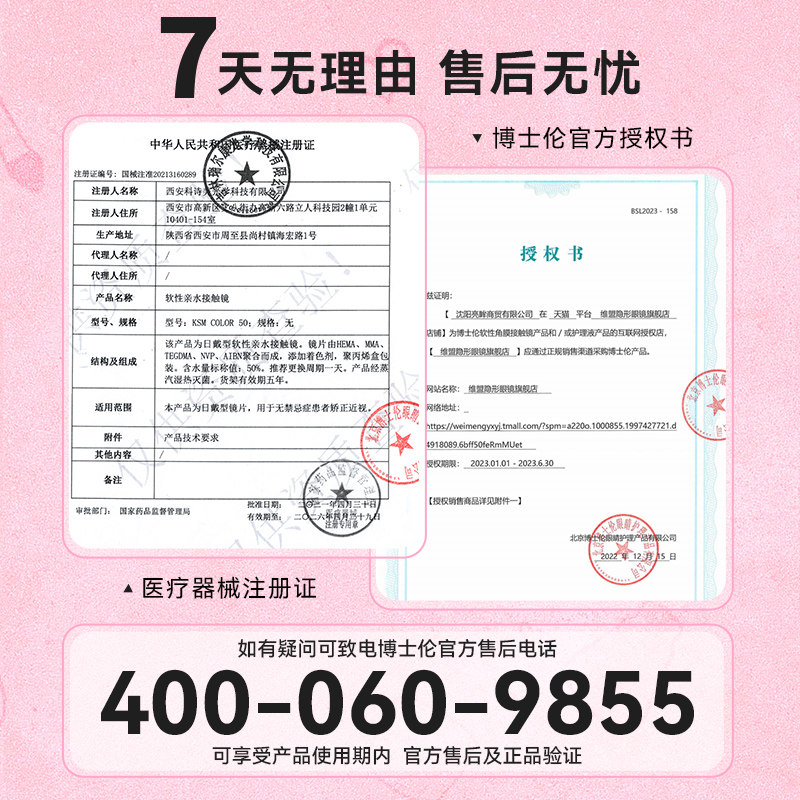 新品】博士伦美瞳日抛10片狗狗眼锁边大直径彩色隐形眼镜官方正品