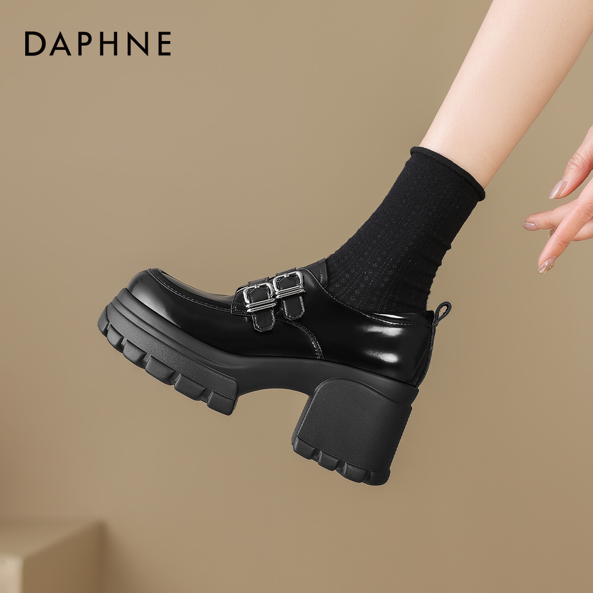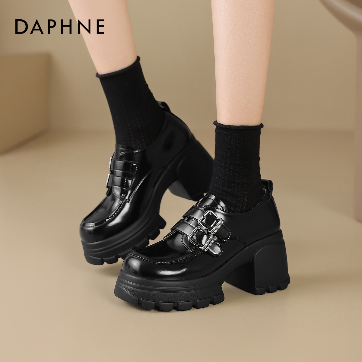 达芙妮高跟鞋乐福鞋女2025新款秋季黑色小皮鞋英伦风粗跟增高单鞋