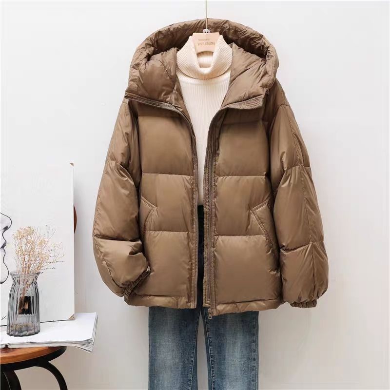 小个子连帽冬季羽绒服女冬季爆款韩版宽松收腰外套多巴胺面包服