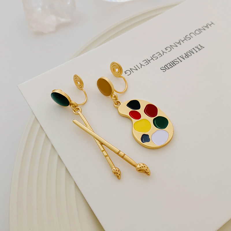 不对称创意画具耳环个性画笔调色盘耳饰可爱小众蚊香盘无耳洞耳夹