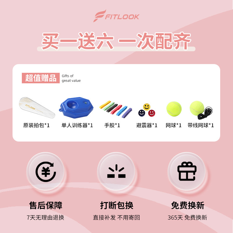 mbfish网球回弹训练器单人打带线碳素网球拍初学者大学生成人正品