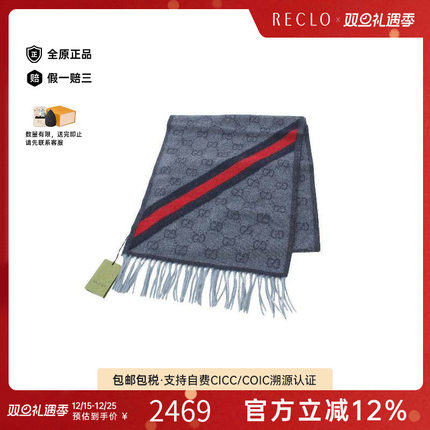 中古Gucci古驰男S级99新Scarf围巾羊毛围巾/丝巾蓝色