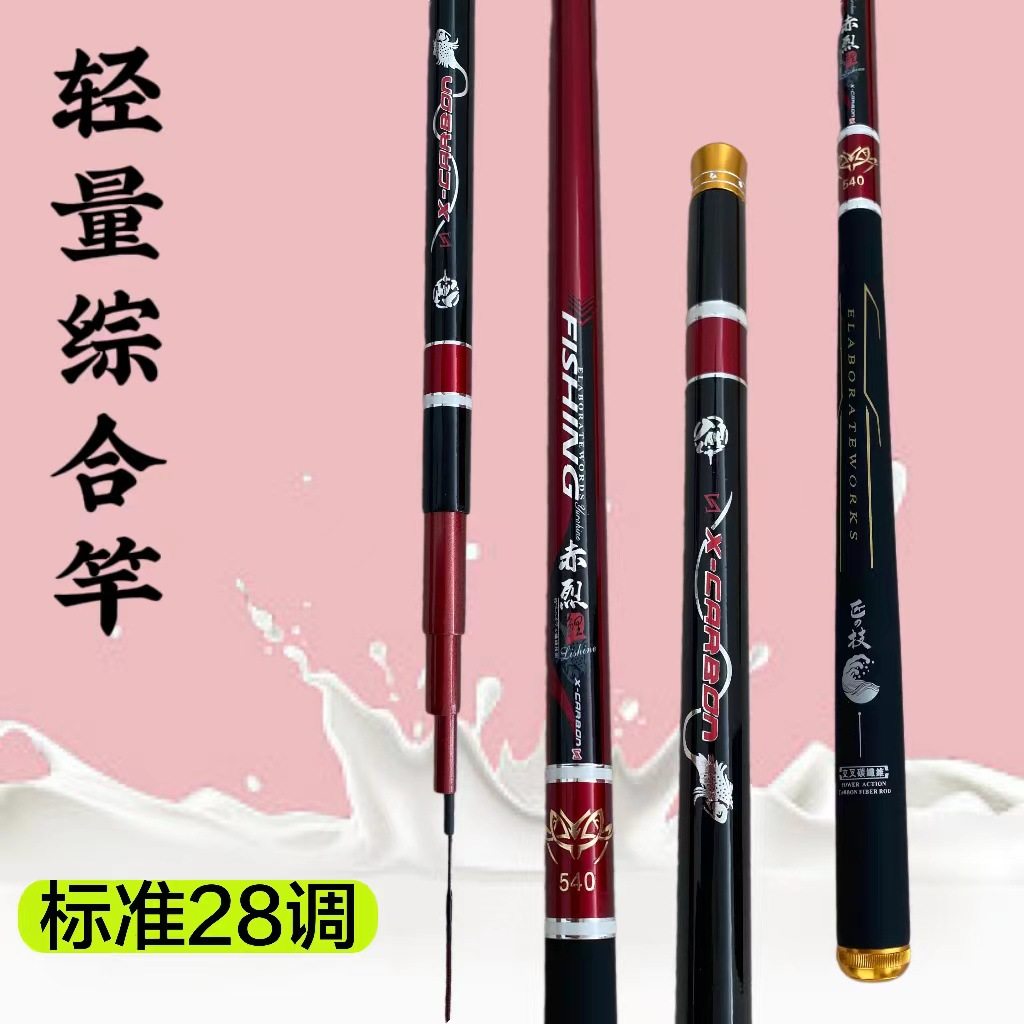 硬野钓28调综合竿鲤鱼竿4.5米5.4米休闲竿台钓杆手竿渔具碳素鲤竿