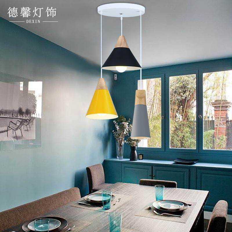 led吊灯复古工业风灯饰客厅木艺创意灯北欧餐厅铝材吊灯家居灯饰