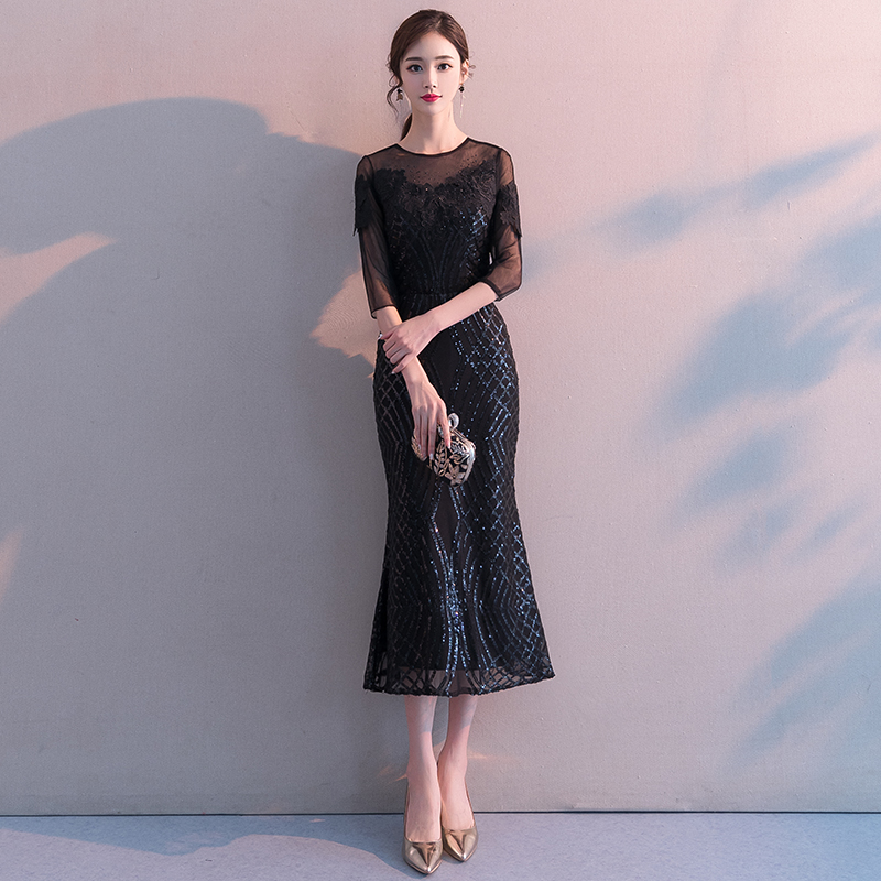 宴会小晚礼服裙女2025新款黑色中长款鱼尾气质名媛小个子平时可穿