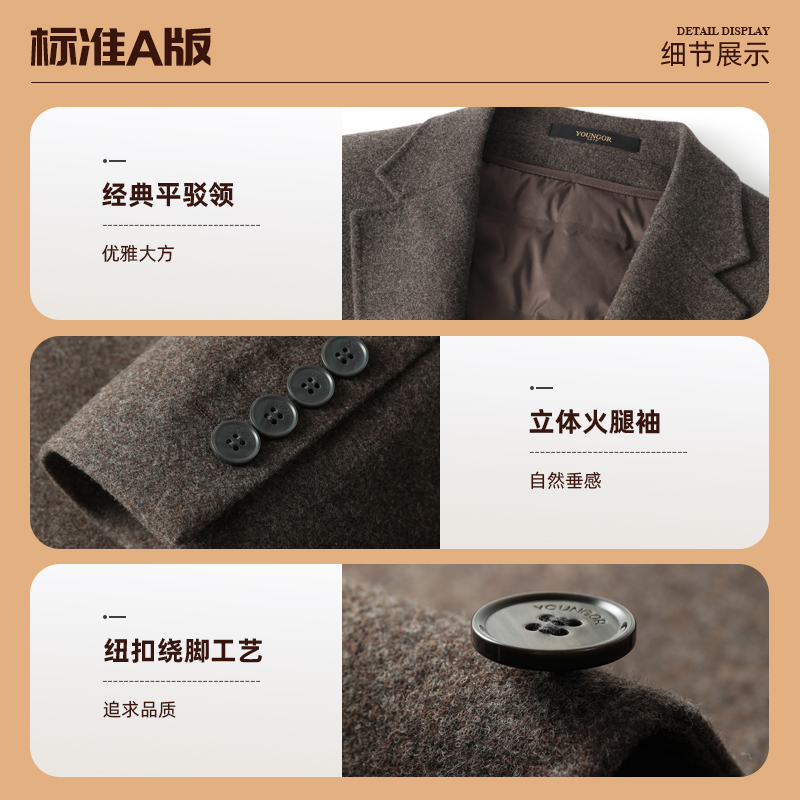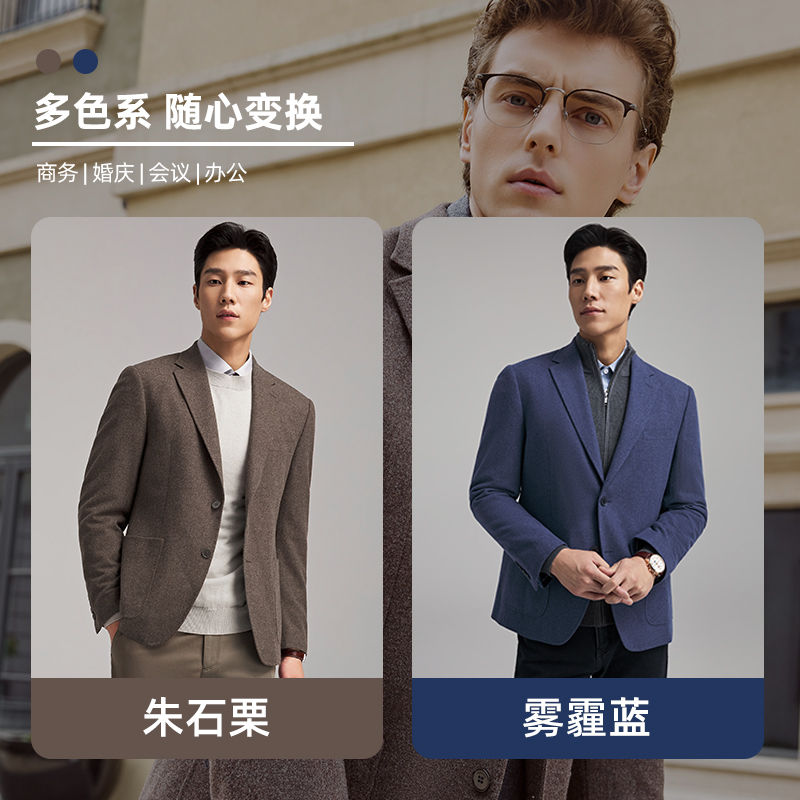 雅戈尔男士西服秋季新款商务正装上班羽绒保暖羊绒内胆高级单西男