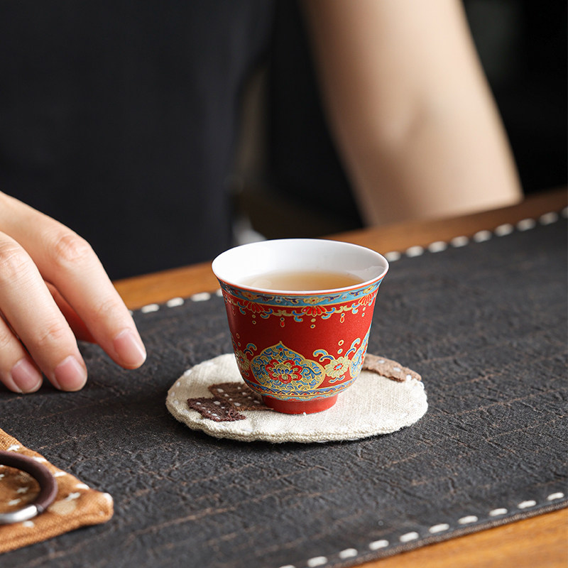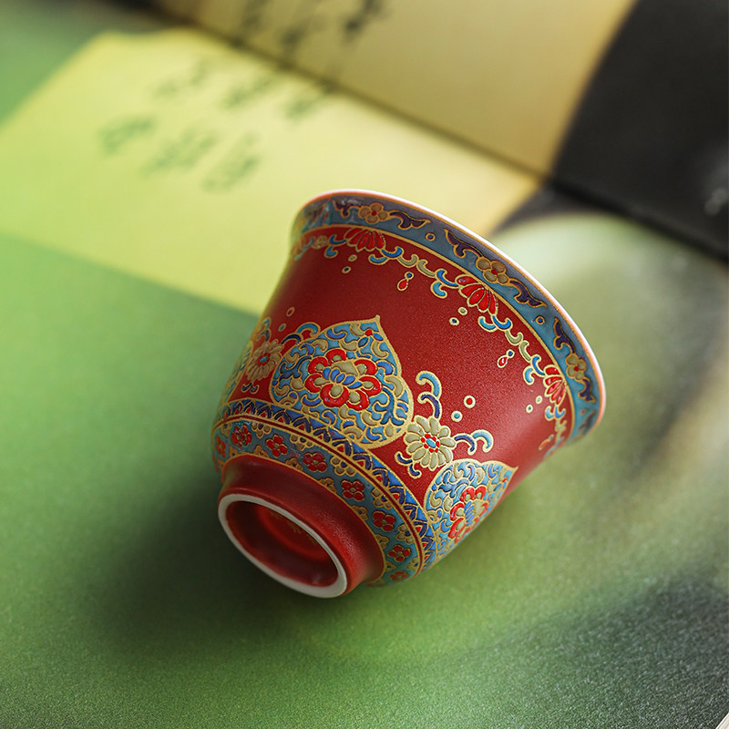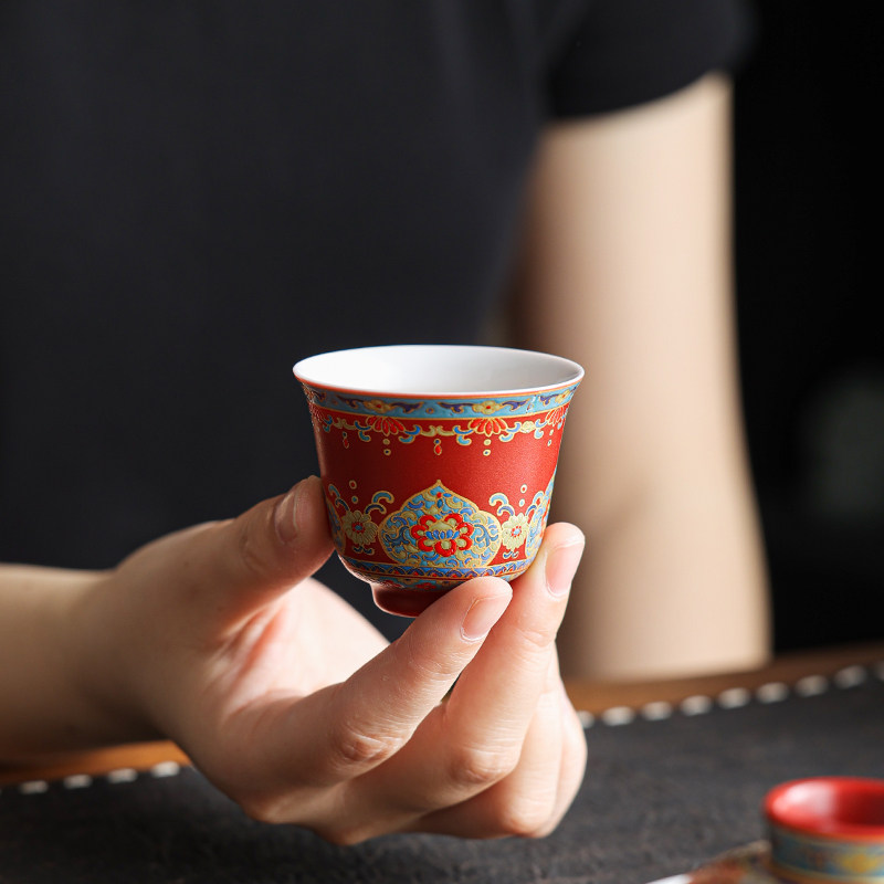 敦煌珐琅彩茶杯主人杯品茗杯中国风功夫茶具陶瓷高档家用喝茶单杯