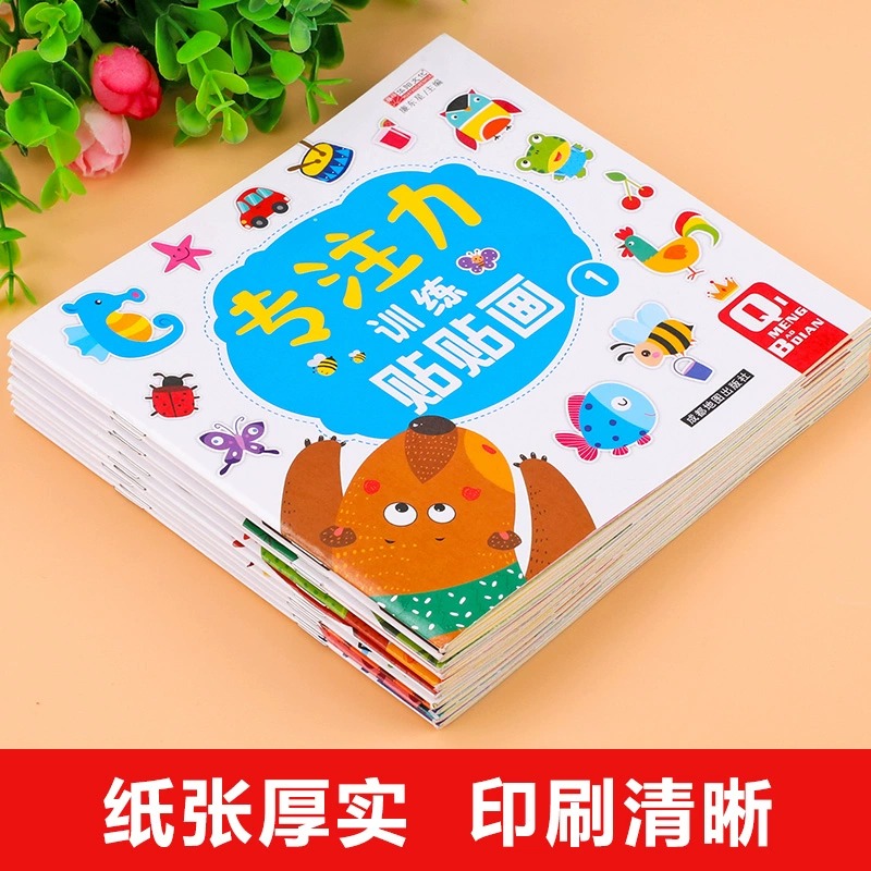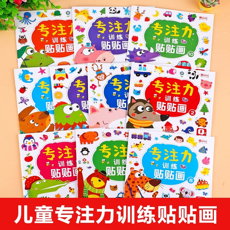 儿童益智专注力贴纸书全套10册 全脑逻辑思维游戏训练 幼儿园书籍 宝宝贴贴画0-2-3-5-6岁粘贴纸早教绘本 0到3岁到6岁启蒙认知书