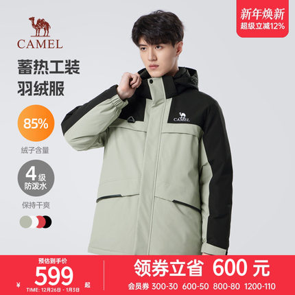 骆驼男装2024年秋冬新款蓄热工装派克羽绒服连帽防泼水防风外套男