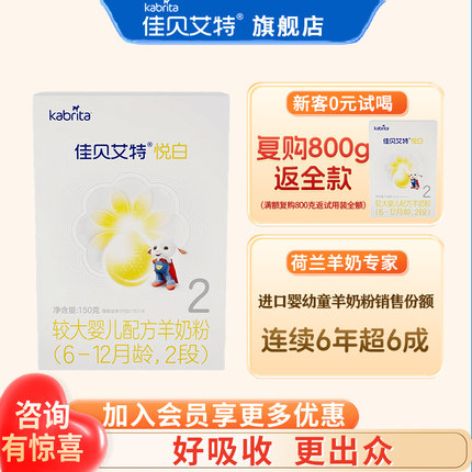 0元试喝丨佳贝艾特悦白羊奶粉2段150g旗舰店二段试用装官方正品