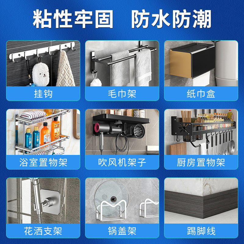 免钉胶强力胶墙面瓷砖专用厨卫浴室金属置物架贴墙免打孔胶水粘墙神器万能粘得牢踢脚线多功能家用胶固定厨房