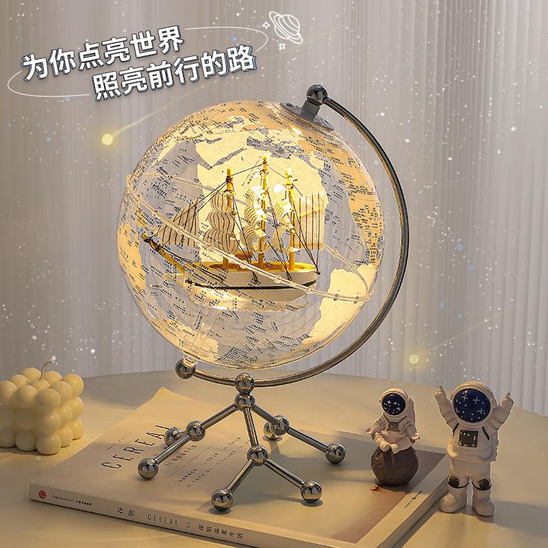升级款帆船地球仪摆件带灯光轻奢高档客厅电视柜办公室生日礼物男