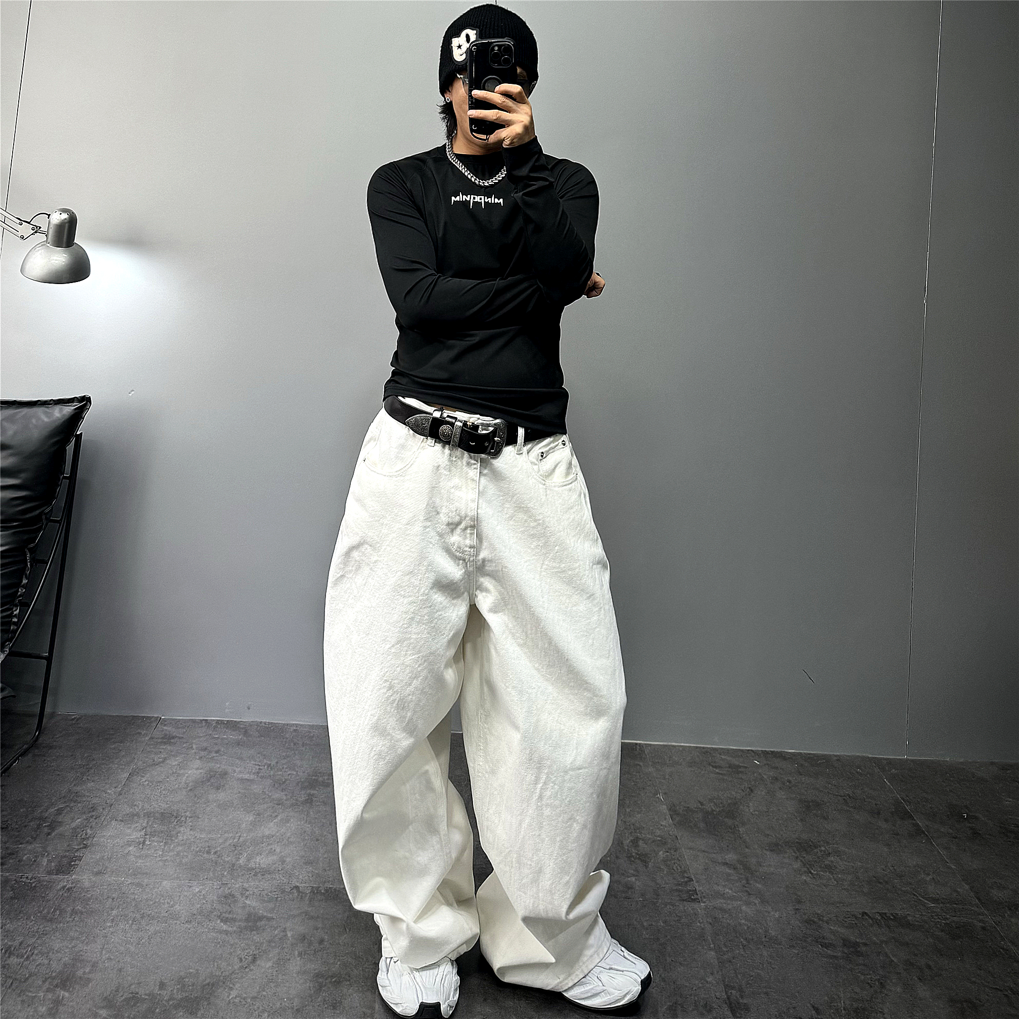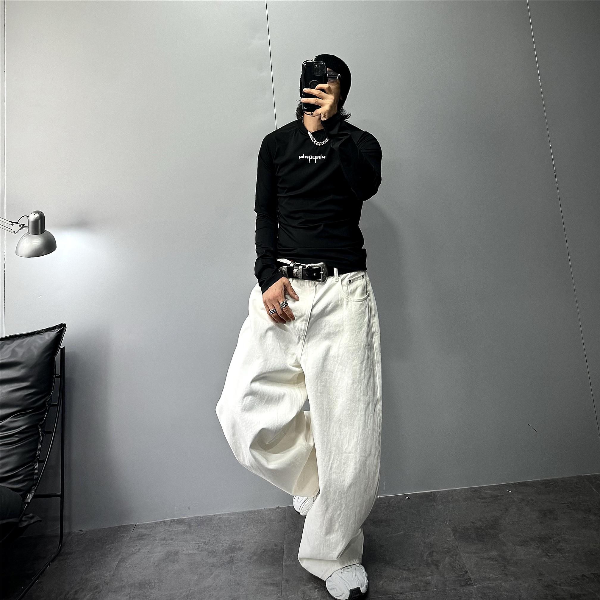 黑色高街修身长袖t恤男潮牌健身T