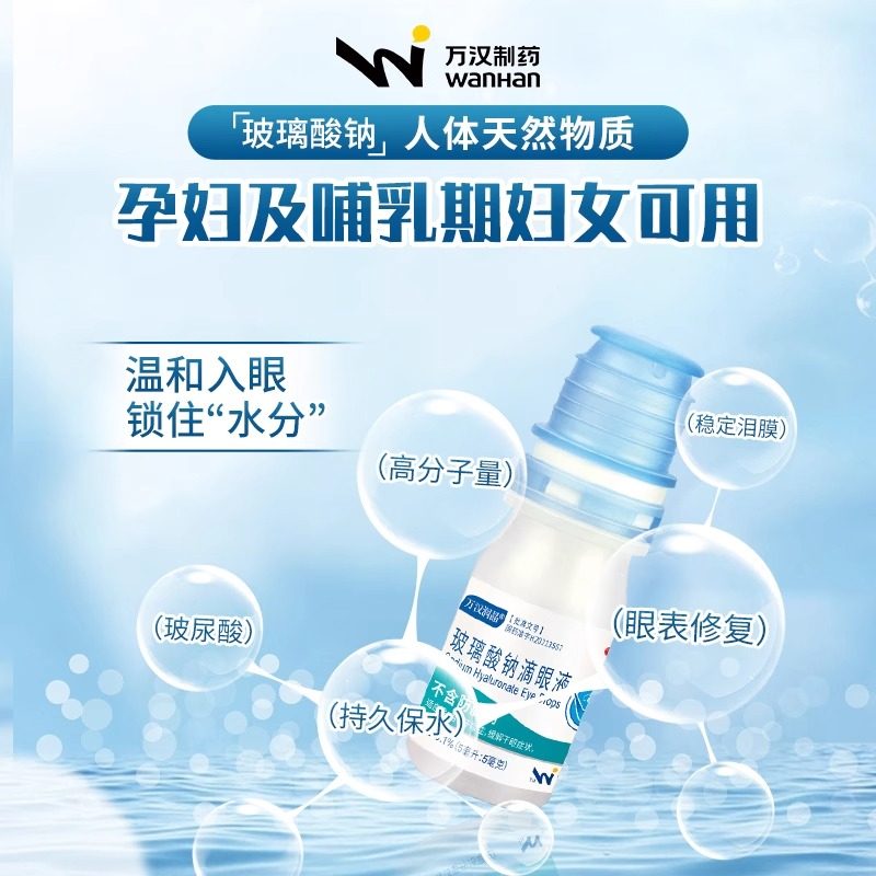 万汉润晶玻璃酸钠滴眼液干眼症人工疲劳泪液缓解干涩一次性中山
