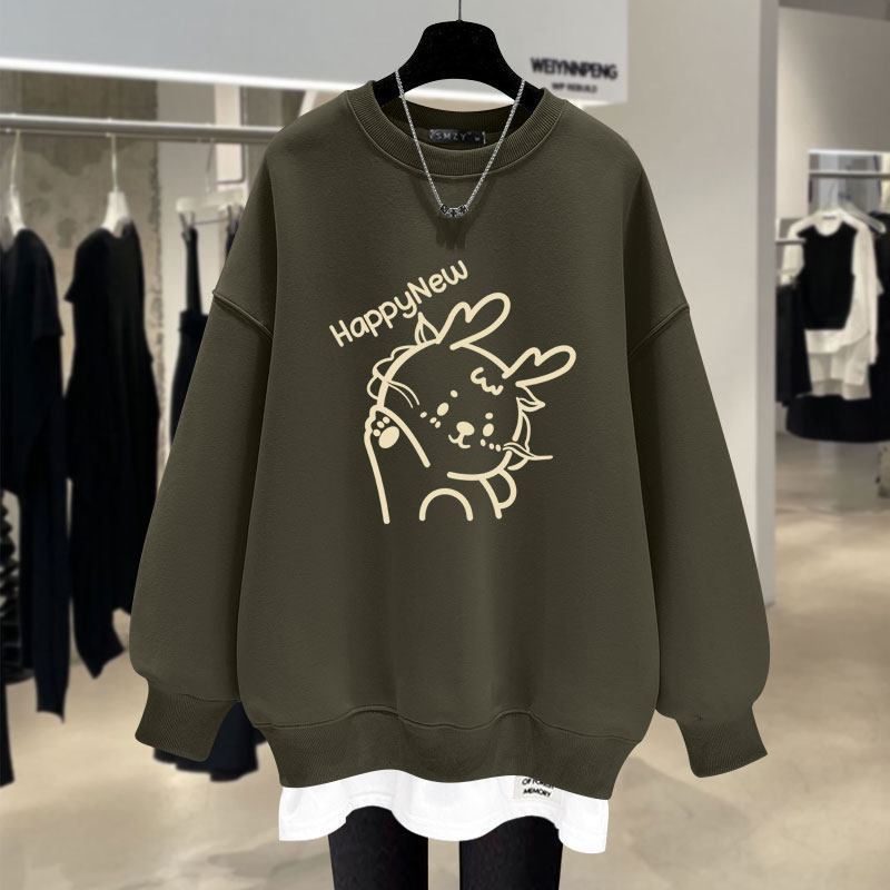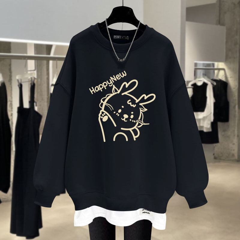 卫衣假两件宽松圆领中长款