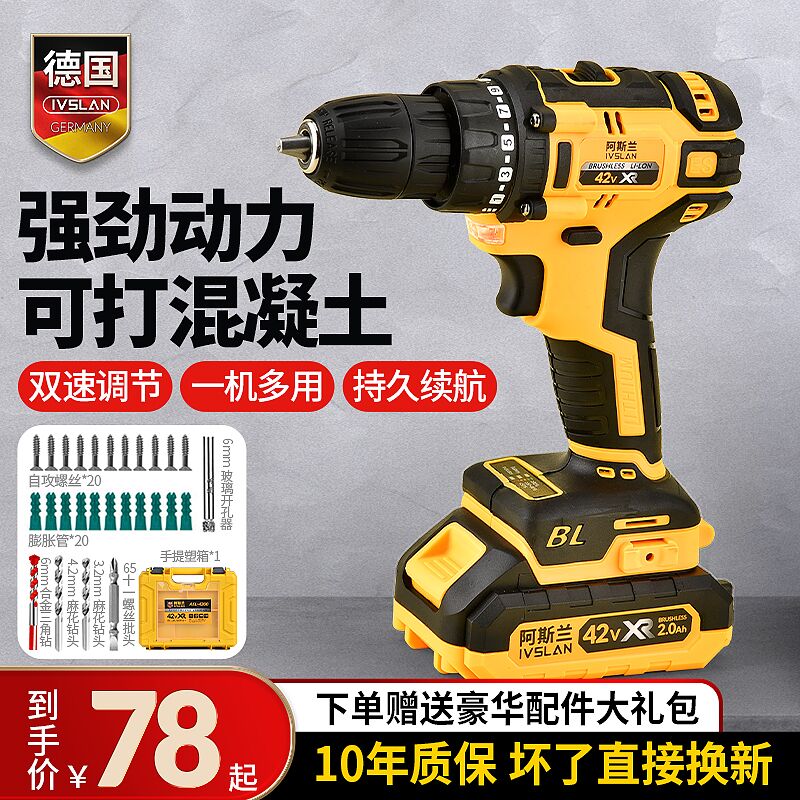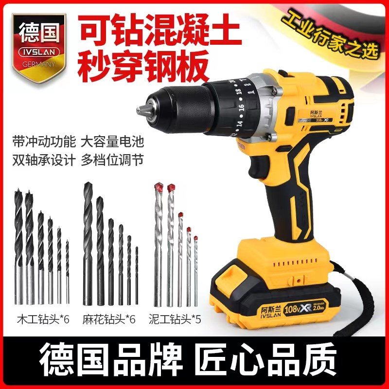 热销阿斯兰锂电钻家用多功能充电冲击钻大功率手枪钻电动螺丝工具
