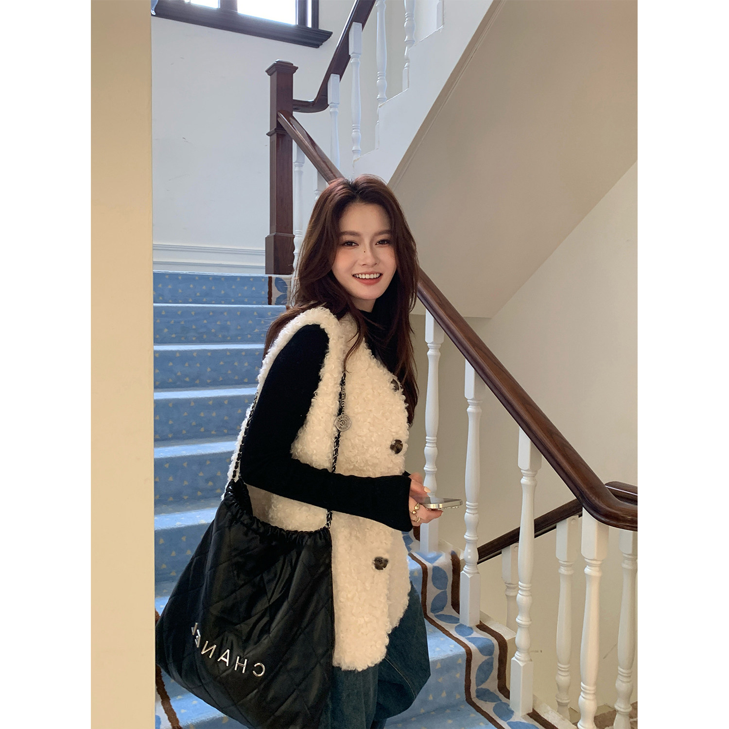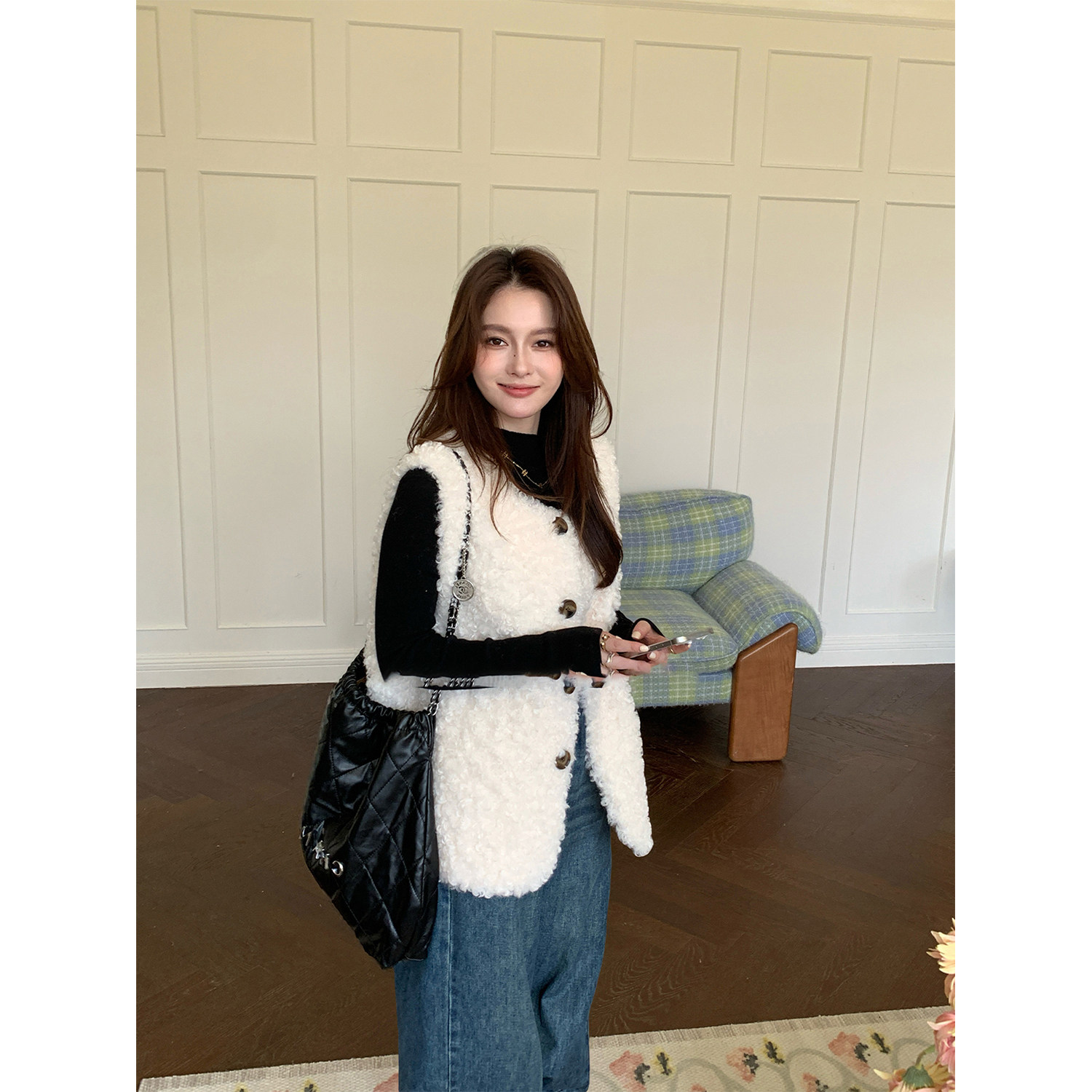 羊羔毛外套环保皮草毛毛外套短款韩系羊羔绒马甲女2025秋冬新款