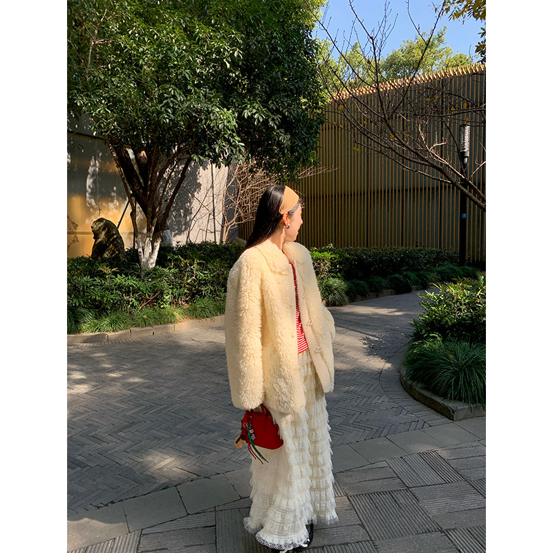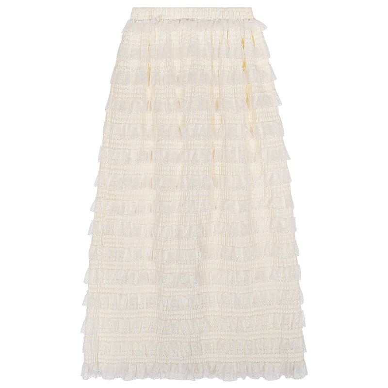 今屿花花 半身裙女2025年新款秋冬款米白色蕾丝蛋糕裙小个子长裙