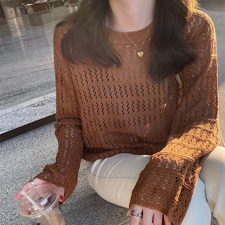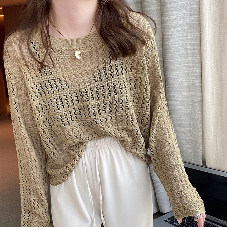 缕空针织衫女薄款毛衣2025秋装新款设计感小众长袖宽松外套上衣