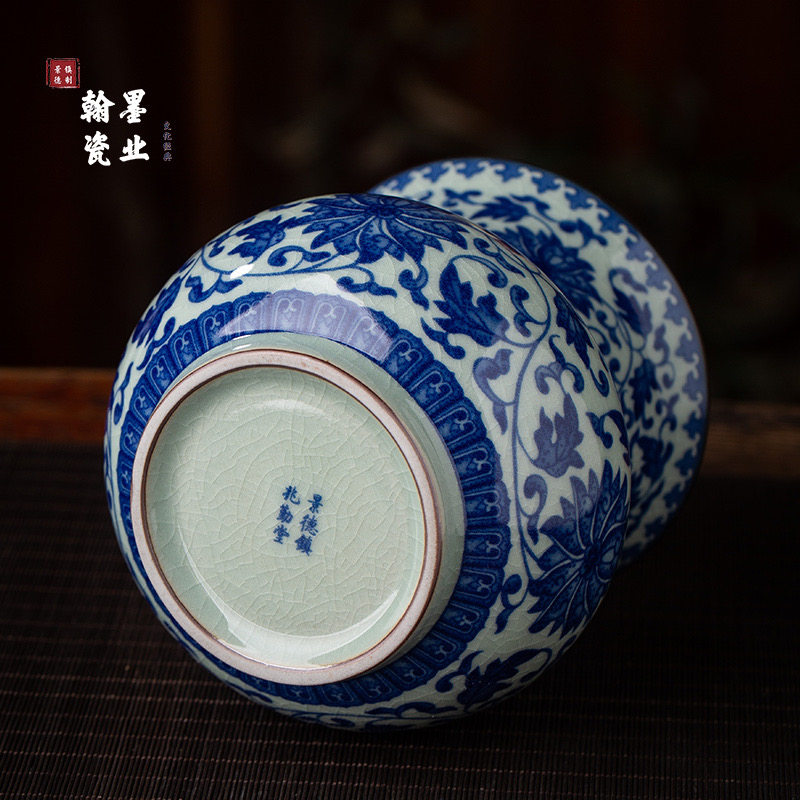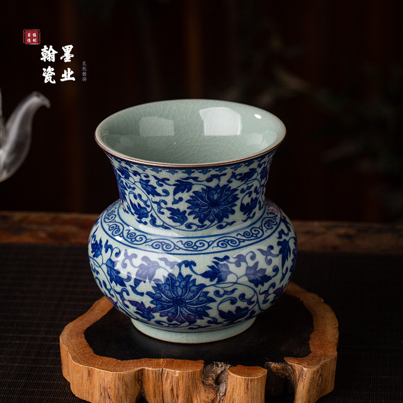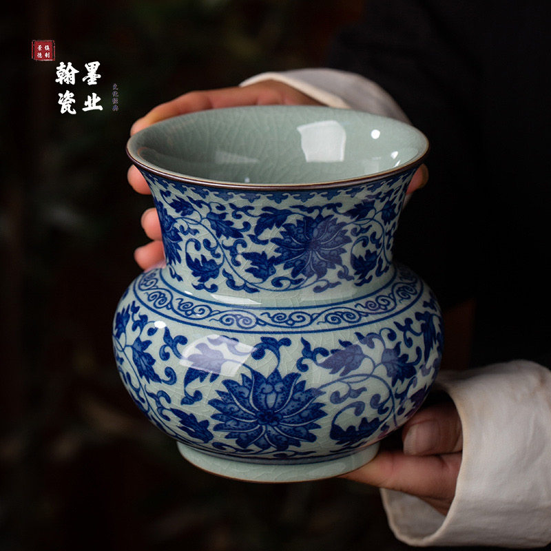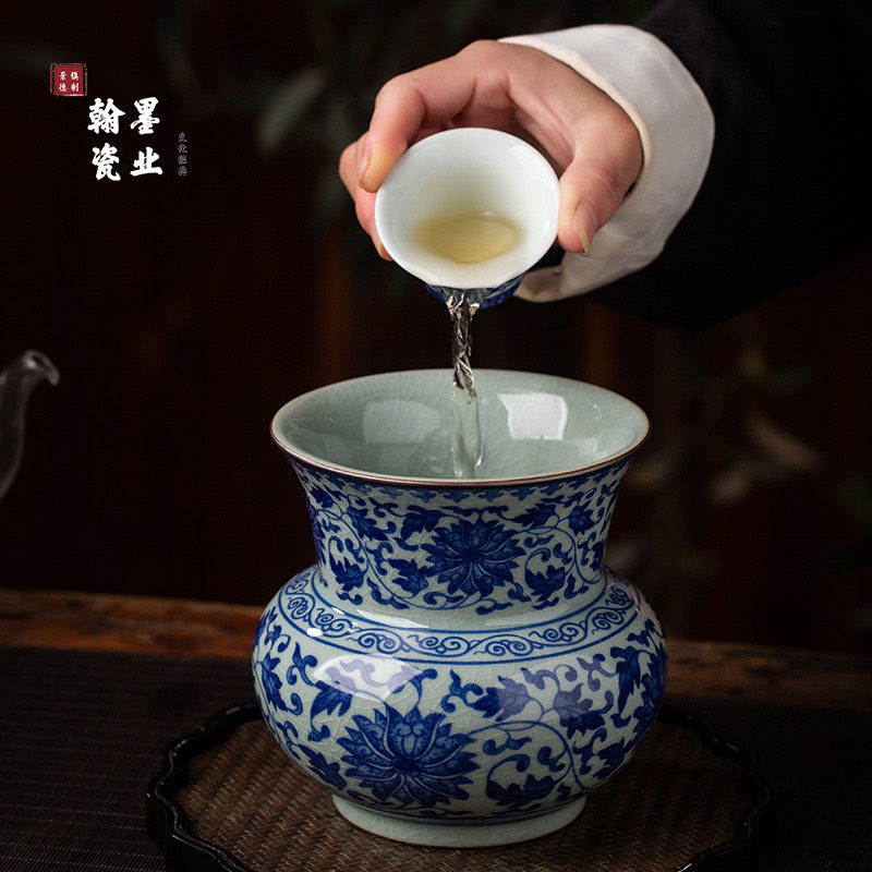 景德镇兆勤堂陶瓷老陶泥青花缠枝莲茶渣缸家用复古建水茶洗废水缸