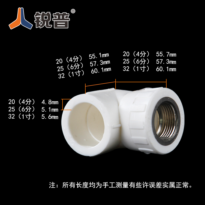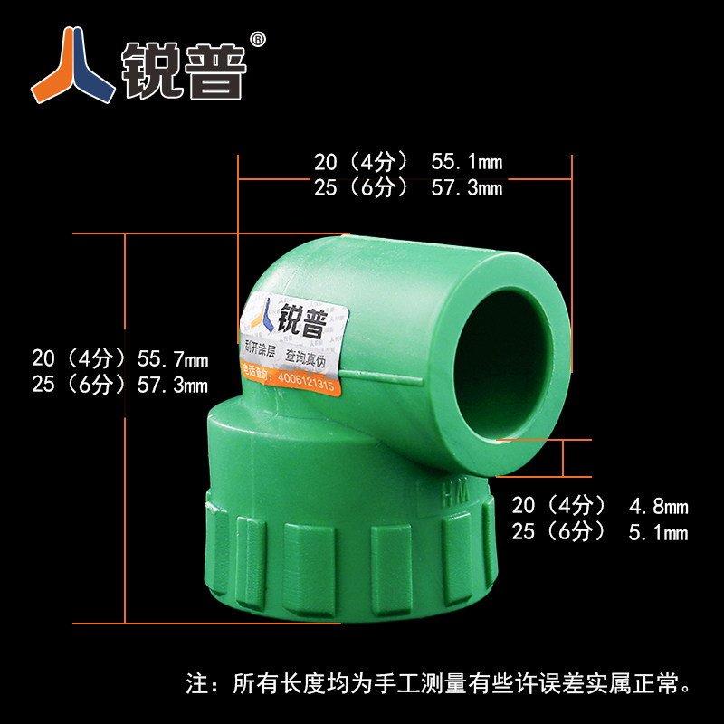 锐普ppr内丝弯头20 25 32 4分 6分 1寸 40 50内牙弯头 PPR管件