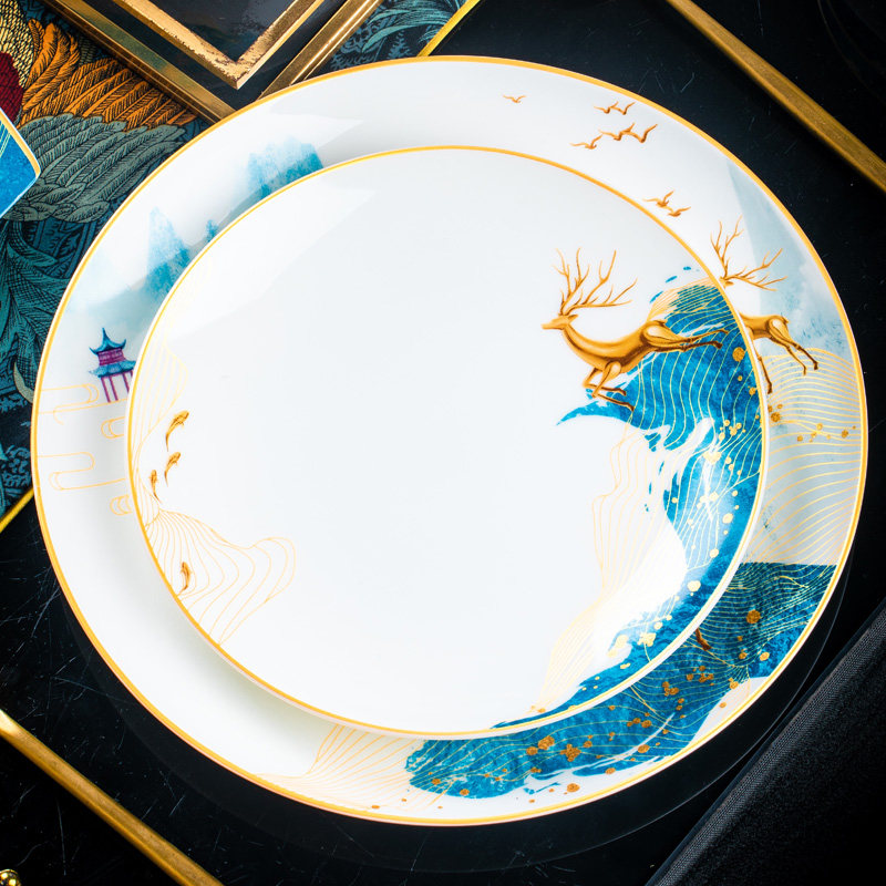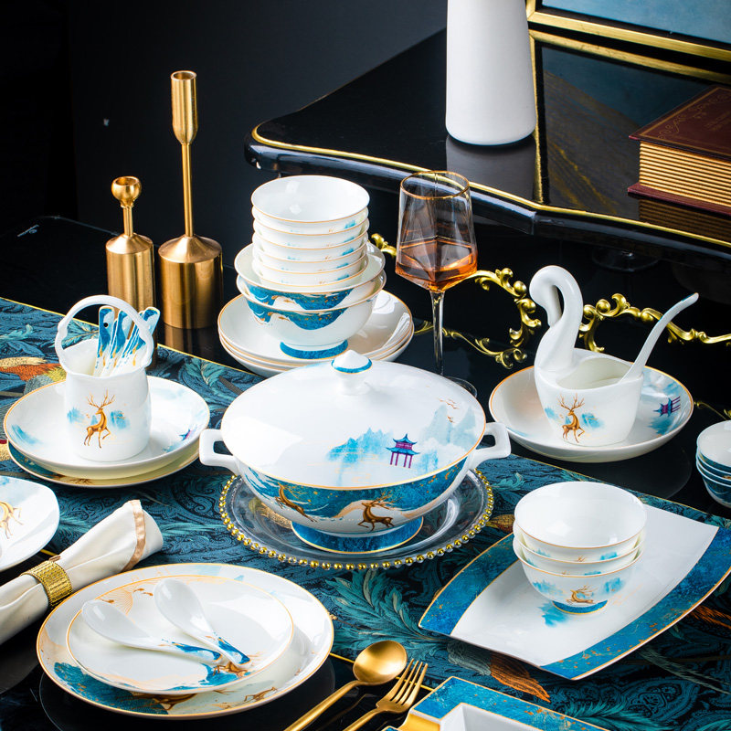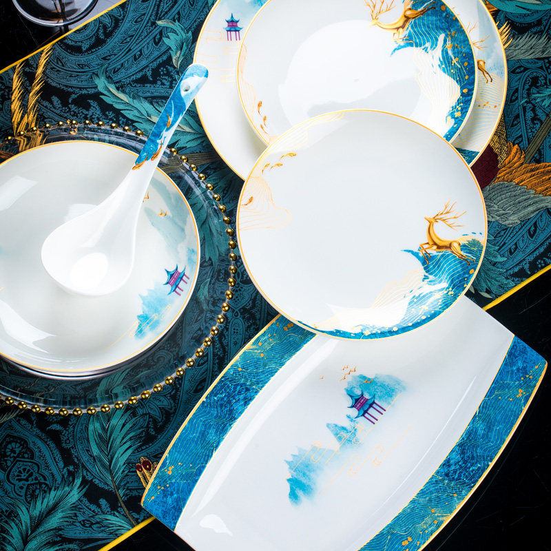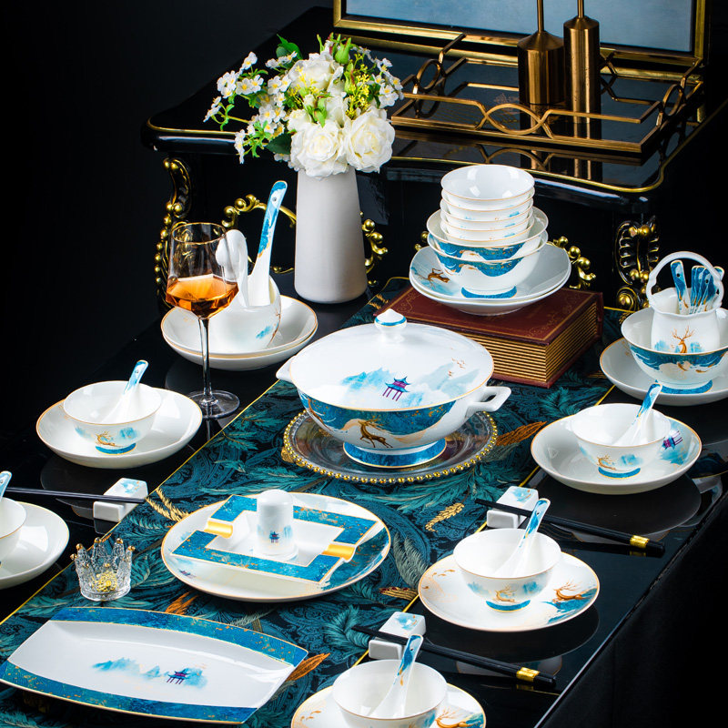 碗碟套装家用景德镇骨瓷餐具宫廷碗盘组合新中式轻奢陶瓷器送礼