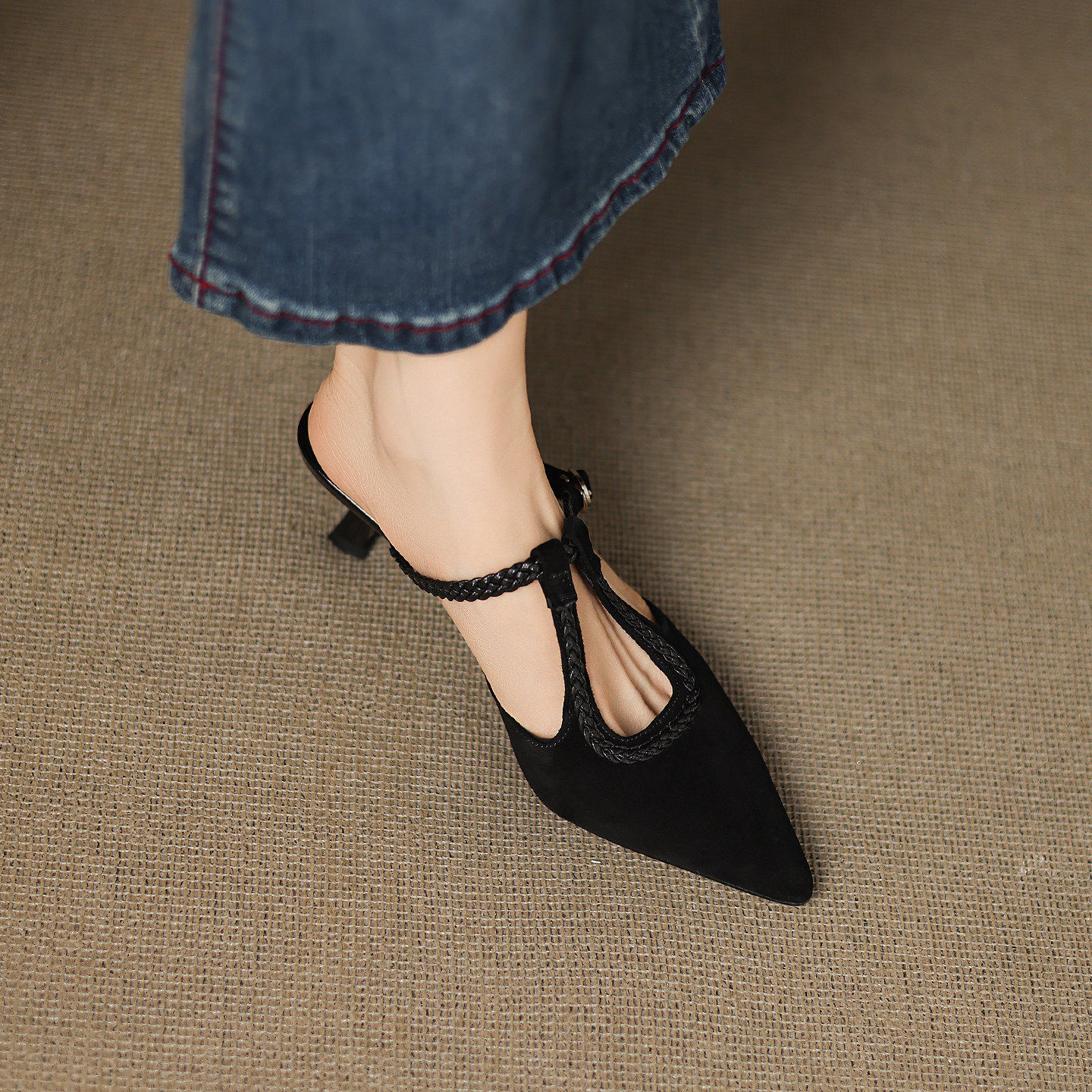法式气质小众尖头高细跟包头凉拖鞋女2026新款夏外穿百搭豹纹黑色