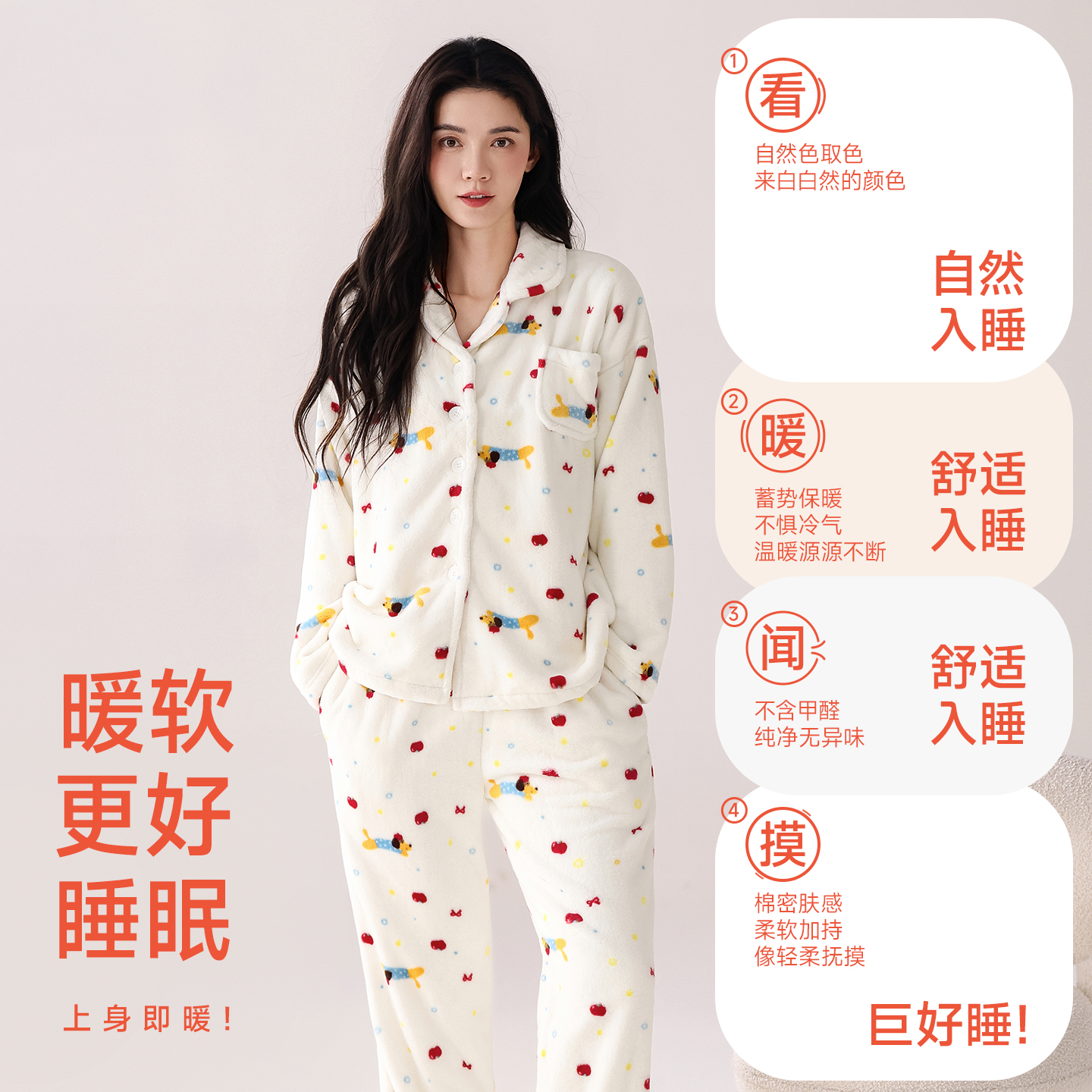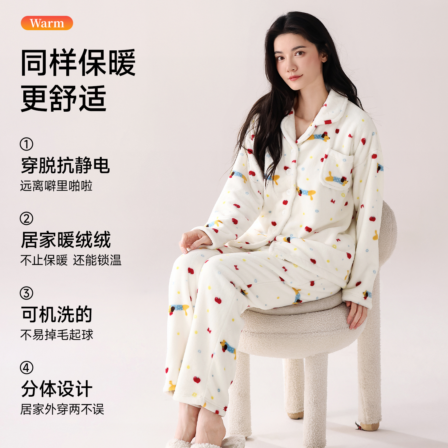 猫人珊瑚绒睡衣女加绒家居服套装