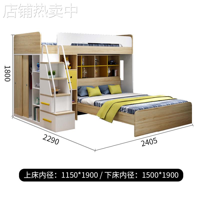 交错式衣柜上下床多功能小户型二胎儿童房高低床带衣柜子母双层床