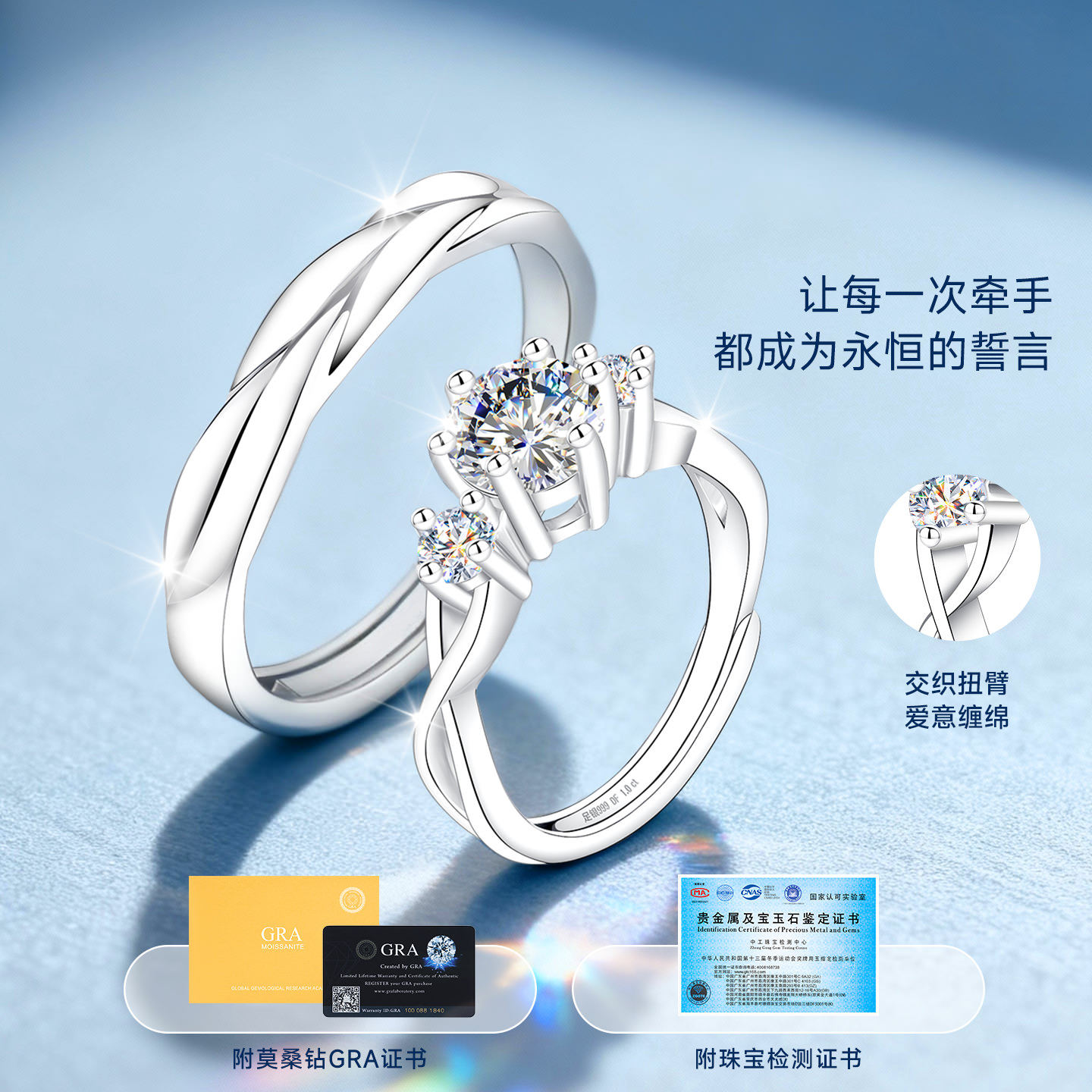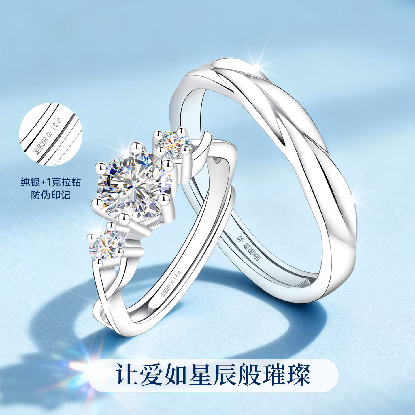 情侣对戒999纯银一对银戒指结婚婚戒莫桑石莫桑钻钻戒婚礼仪式用