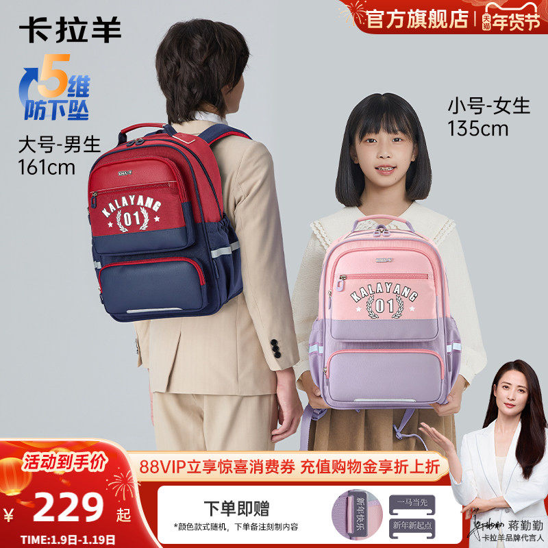 卡拉羊1-4-6年级风琴书包小学生大容量轻便防下坠女双肩包男背包