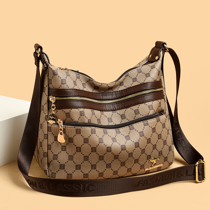袋鼠真皮女包斜挎包大容量软皮包包女士2025新款中老年妈妈包牛皮