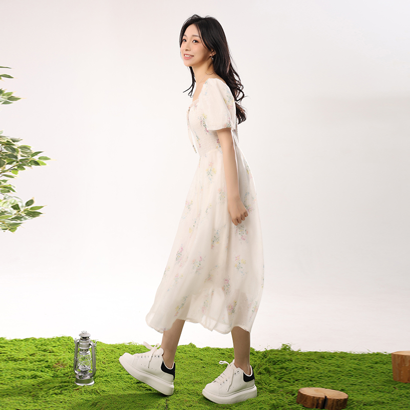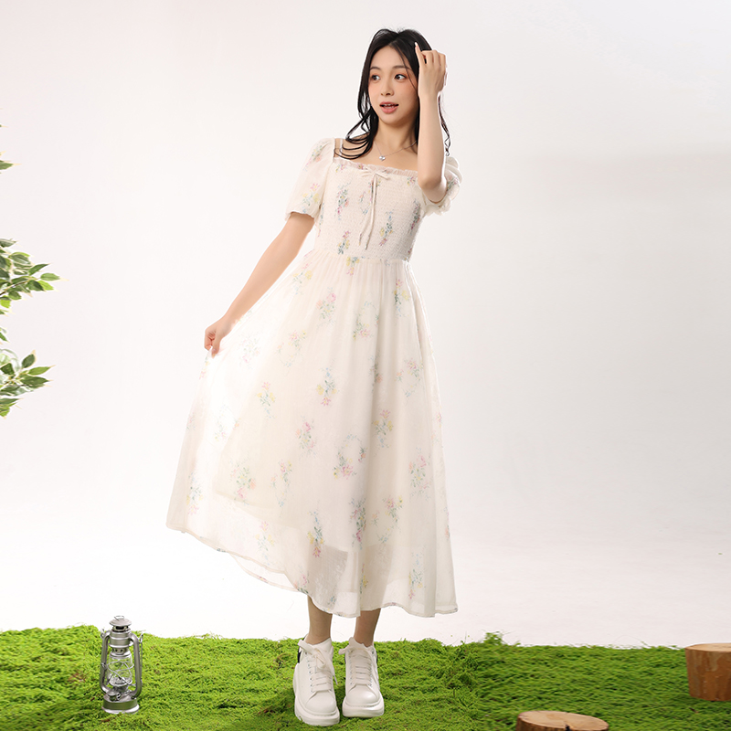 金苑雪纺连衣裙女夏季2024新款甜美高级感小清新仙女裙子G242130