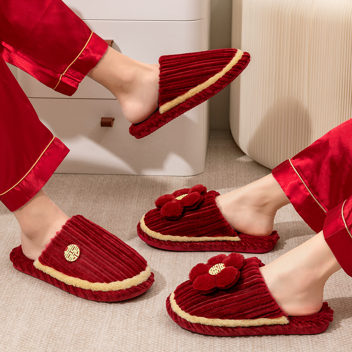 日本棉拖鞋结婚一对女冬季2025新款喜庆陪嫁新婚睡衣情侣红色鞋天