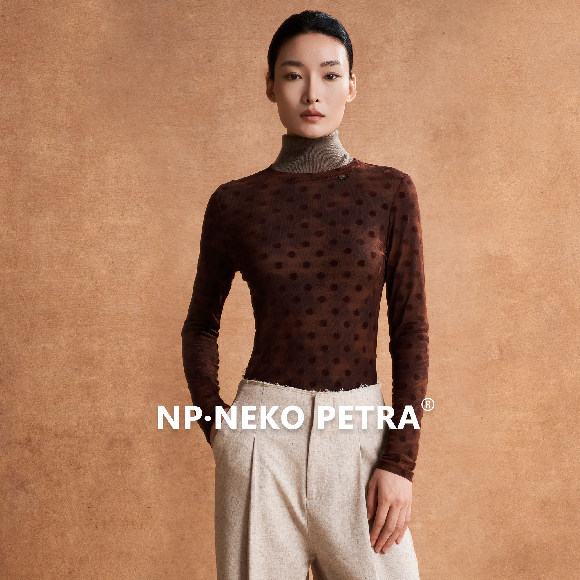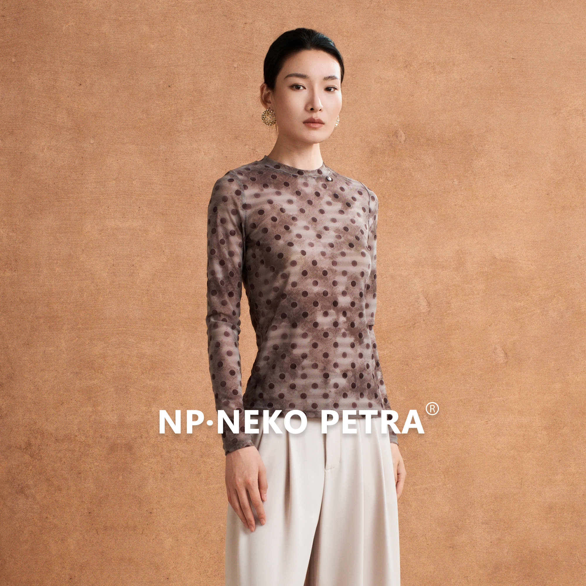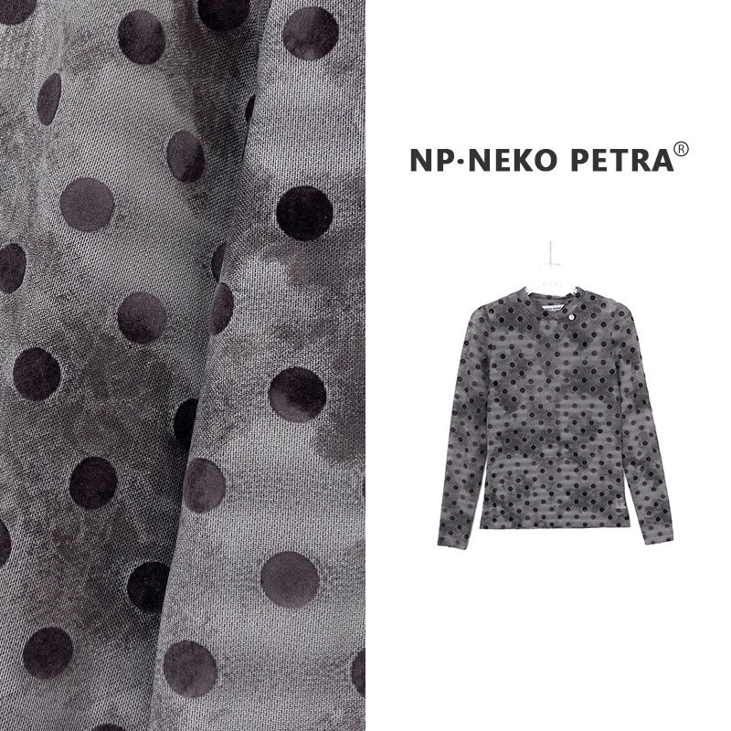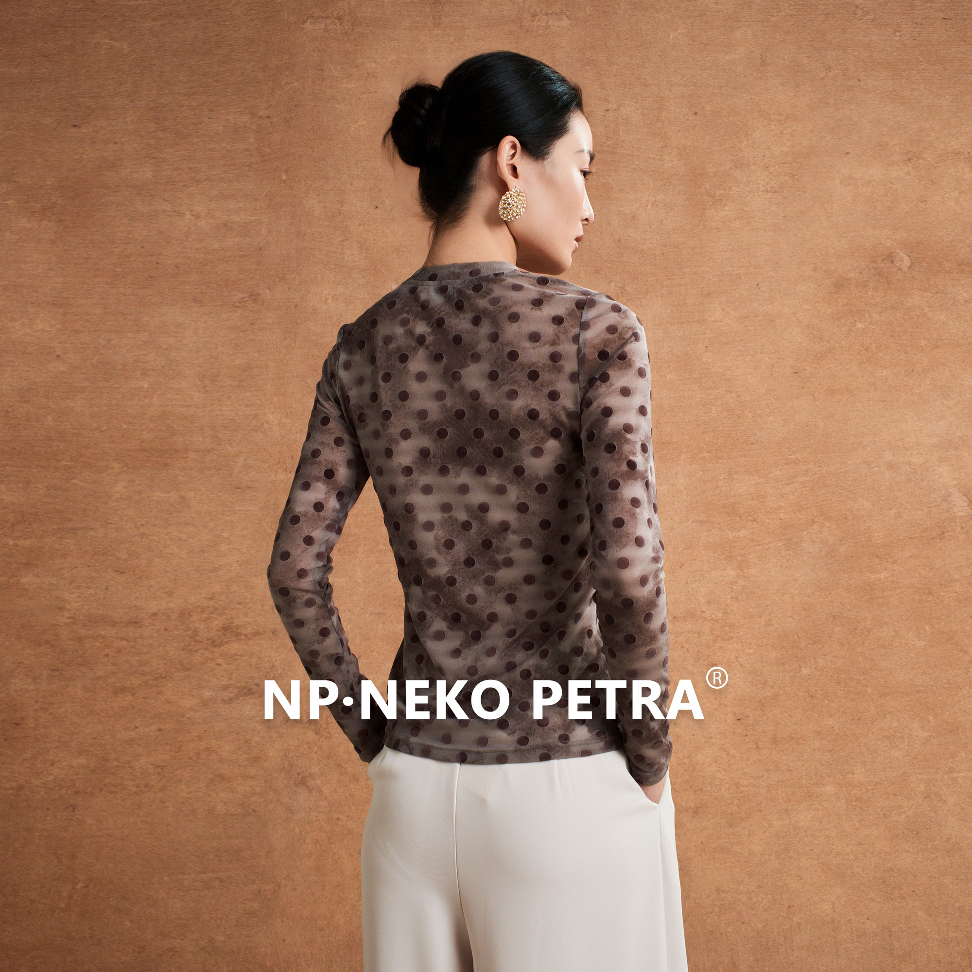 限时清仓特卖/复古植绒波点打底衫女春秋薄款时尚显瘦弹力网纱T恤